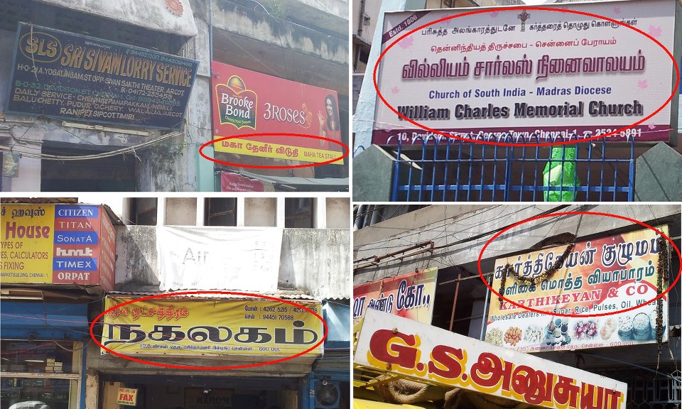 தமிழ் பெயர் பலகைகள் எப்படி இருக்க வேண்டும்/இருக்கக் கூடாது – இதோ உதாரணங்கள்!!