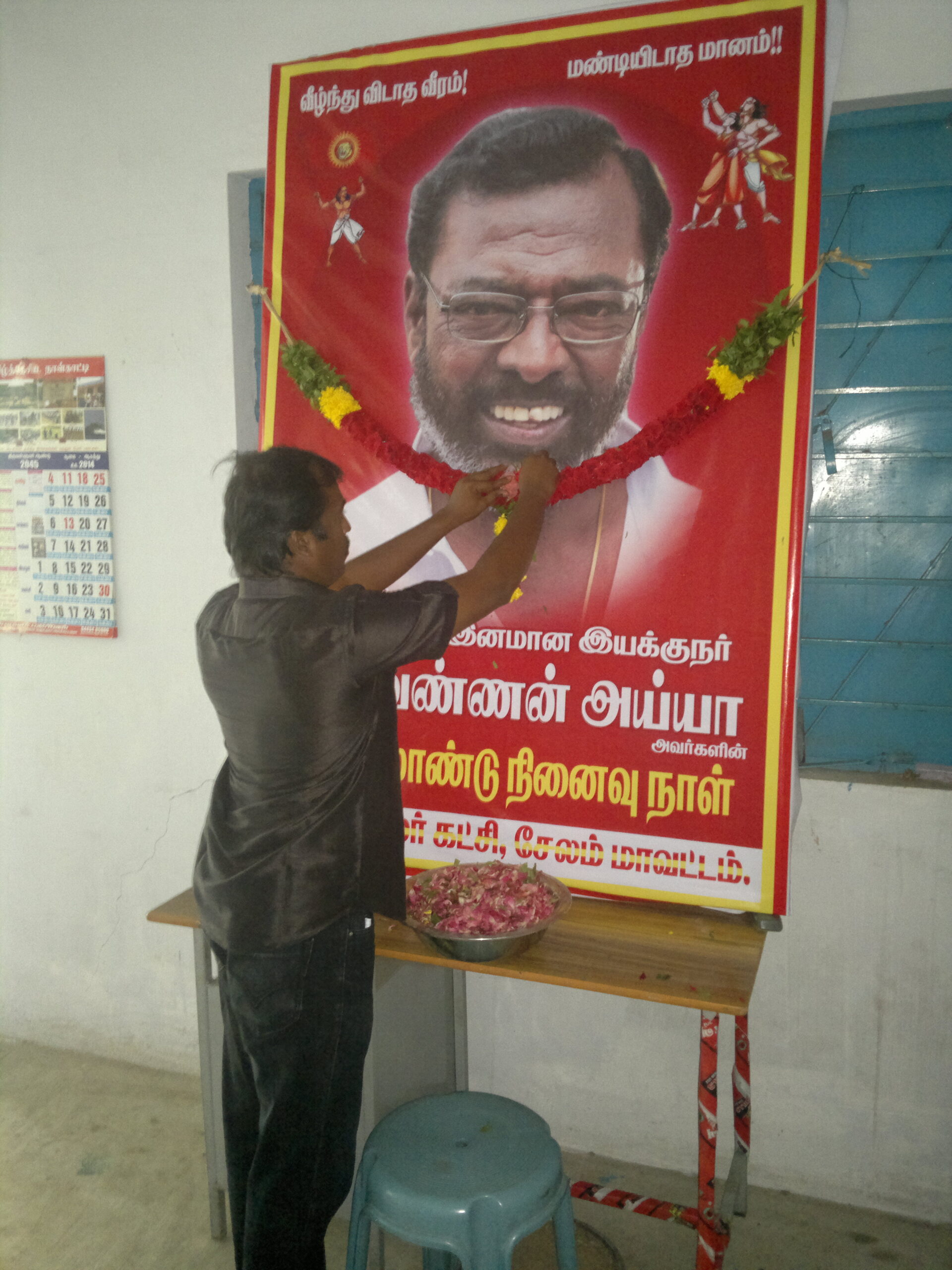 மொழிக்காகவும் இனத்திற்காகவும் அதன் உரிமைகளுக்காகவும் உடல் நலம் பாதிக்கப்பட்ட சூழலிலும் கூட களத்தில் நின்று போராடியவர்… நான் இறந்தபிறகு தமிழர்களின் தேசியக்கொடியான புலிக்கொடியை என் உடலில் போர்த்த வேண்டும்.. சொந்தம் என்று சொல்லி வருபவர்களை காரியம், கருமாதி என்ற பெயரில் செய்யவிடாமல் எனது பிள்ளை எனது தலைவன் சீமானிடம் எனது உடலை ஒப்படைத்துவிடுங்கள் என சொன்னவர். தேசியத்தலைவரால் அன்பு பாராட்டப்பட்டவர். அய்யா அவர்களுக்கு நாம் தமிழர் கட்சியின் சார்பாக மாவட்டச் செயலாளர் சி.அருண் தலைமையில் 15.06.2014 ஞாயிறு அன்று மாலை 4 மணி அளவில் சேலம் மாவட்டம் ஓமலூரில் முதலாம் ஆண்டு வீரவணக்க நிகழ்வு நடைபெற்றது. இந்நிகழ்வில் நாம் தமிழர் கட்சியின் உறவுகள் அனைவரும் கலந்து கொண்டனர்.