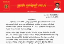 © 2026 ஆக்கமும் பேணலும்: நாம் தமிழர் கட்சி - செய்திப்பிரிவு