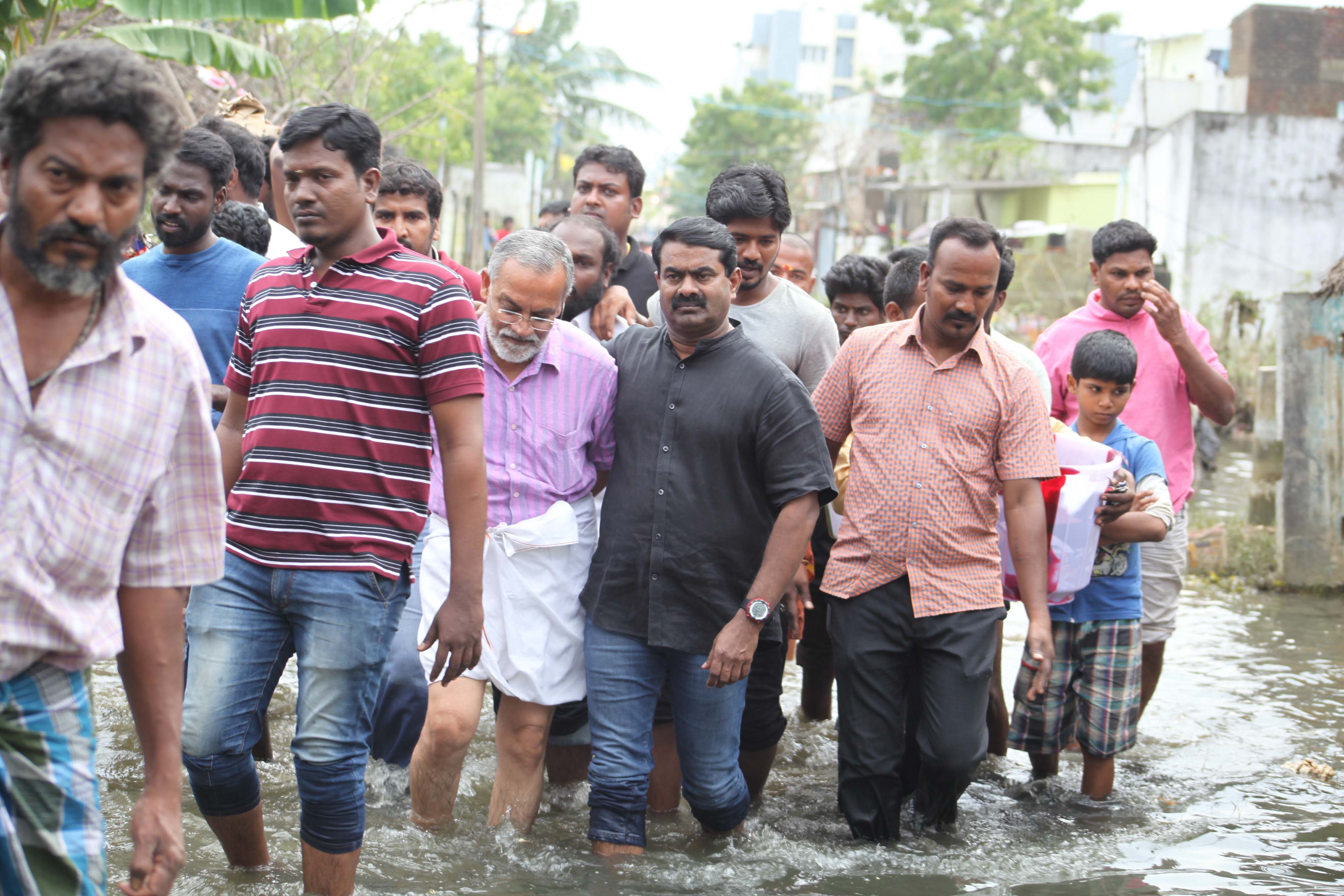 மழைவெள்ளத்தால் பாதிக்கப்பட்ட சோழிங்கநல்லூர் தொகுதிக்குட்பட்ட கல்லுக்குட்டை, பள்ளிக்கரணை மற்றும் வேளச்சேரி ஆகிய பகுதிகளைச் சேர்ந்த மக்களை நாம் தமிழர் கட்சியின் தலைமை ஒருங்கிணைப்பாளர் செந்தமிழன் சீமான் அவர்கள் இன்று (08-12-15) பார்வையிட்டு, அவர்களுக்கு அரிசி, ரொட்டி, போர்வை உள்ளிட்ட அத்தியாவசியப் பொருட்களை வீடு வீடாக சென்று நேரில் வழங்கினார்.
