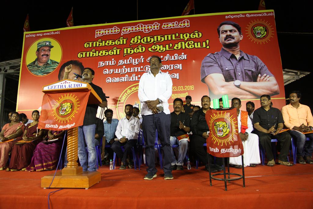 23.3.2016 அன்று வேளச்சேரி தொகுதிகுட்ப்பட்ட தரமணியில் “நாம் தமிழர் ஆட்சியின் செயற்பாட்டு வரைவு வெளியீட்டு நிகழ்வு” பொதுக்கூட்டம் நடைபெற்றது. இதில் தலைமை ஒருங்கிணைப்பாளர் சீமான் எழுச்சியுரையாற்றினார்.