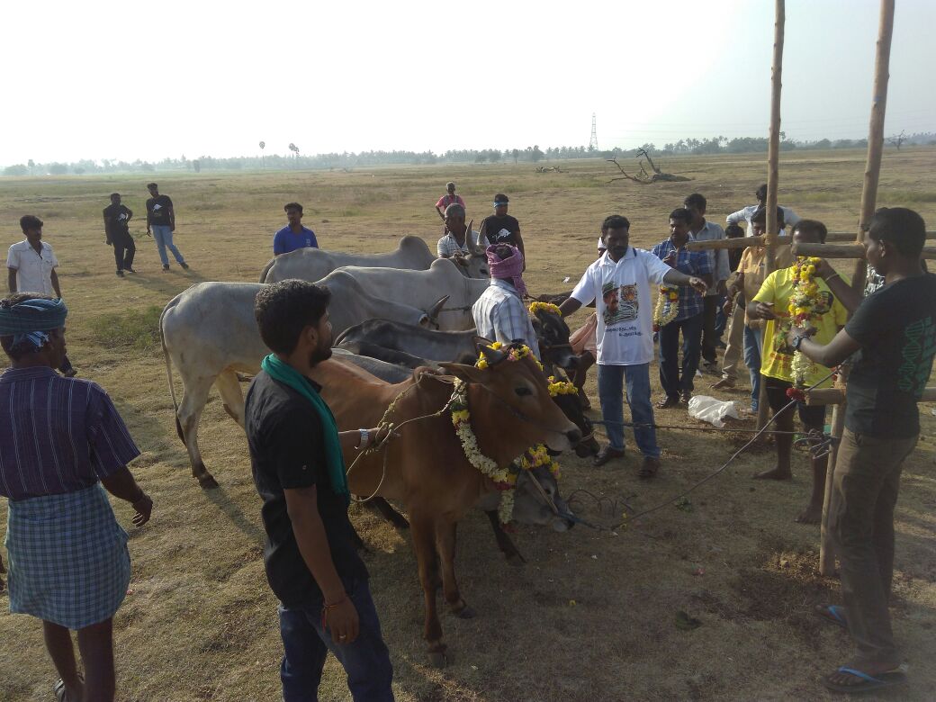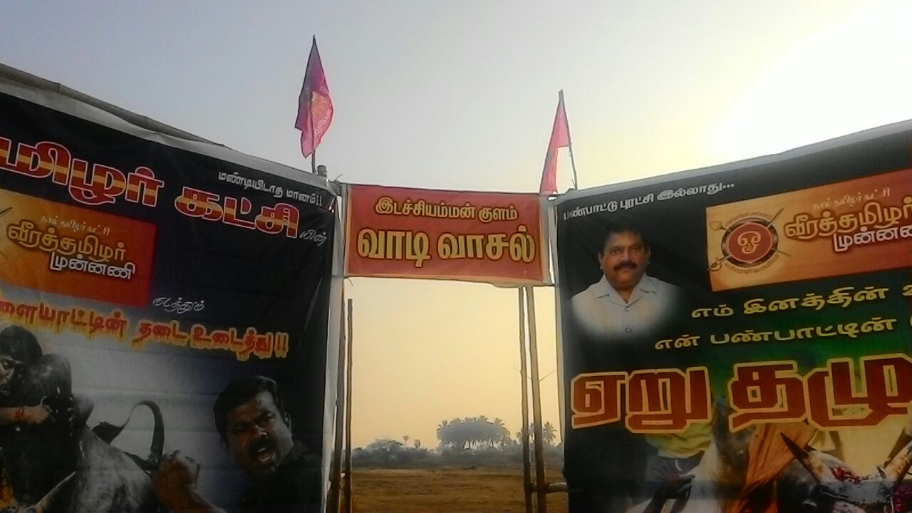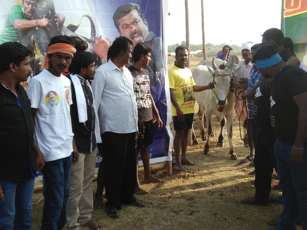 திருப்பூர் மாவட்டம் தாராபுரம் பகுதியில் தடையை மீறி நாம் தமிழர் கட்சி சார்பாக ஜல்லிக்கட்டு