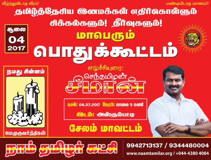 அறிவிப்பு: தமிழ்த்தேசிய இனமக்கள் எதிர்கொள்ளும் சிக்கல்களும்! தீர்வுகளும்! – மாபெரும் பொதுக்கூட்டம் – சேலம் | நாம் தமிழர் கட்சி