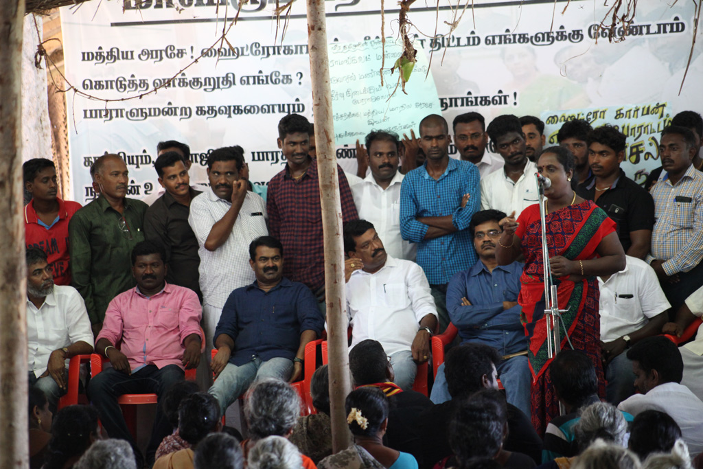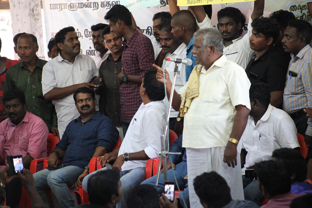 புதுக்கோட்டை மாவட்டம் நெடுவாசலில், மத்திய அரசின் ஹைட்ரோ கார்பன் திட்டத்துக்கு எதிரான இரண்டாம் கட்டப் போராட்டம் 91-வது நாளாகத் தொடர்கிறது. இந்நிலையில், நாம் தமிழர் கட்சியின் தலைமை ஒருங்கிணைப்பாளர் சீமான் நெடுவாசல் போராட்டத்தில் கலந்துகொண்டு ஆதரவு தெரிவித்தார்.