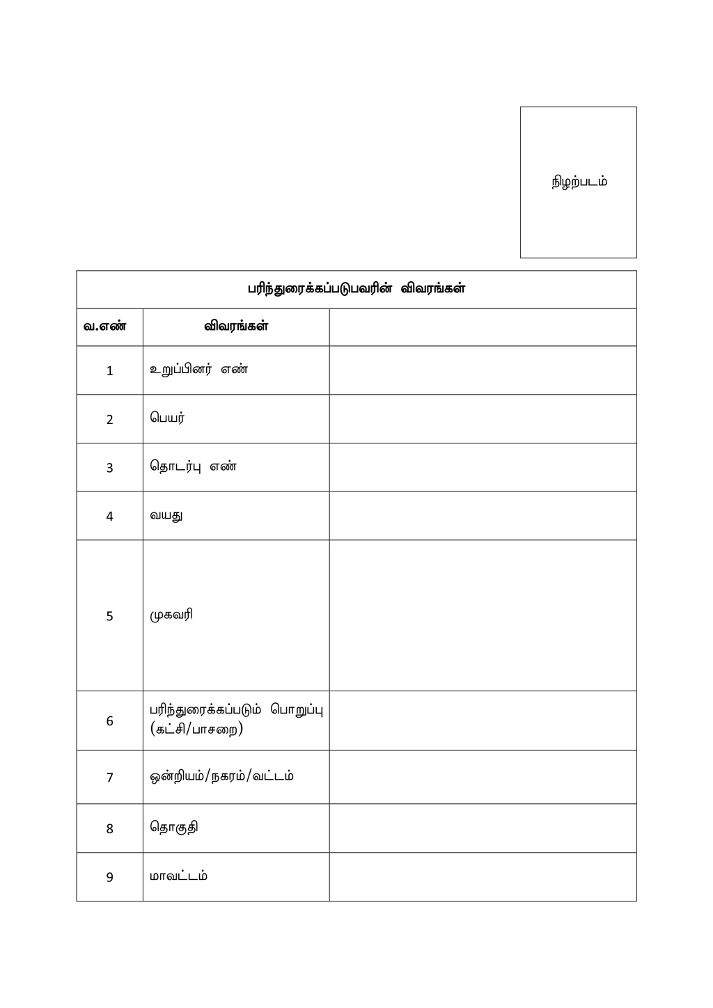 1. படிவத்தில் உள்ள அத்தனை விவரங்களும் கட்டாயம் நிரப்பப்படவேண்டும்.