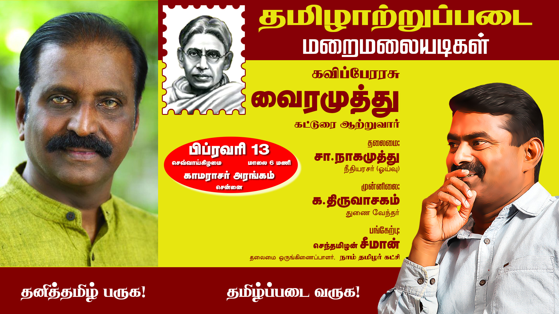 அறிவிப்பு: தமிழாற்றுப்படை – மறைமலையடிகள் பற்றி கவிப்பேரரசு வைரமுத்து கட்டுரை அரங்கேற்றம்- சென்னை | சீமான் பங்கேற்பு – நாம் தமிழர் கட்சி