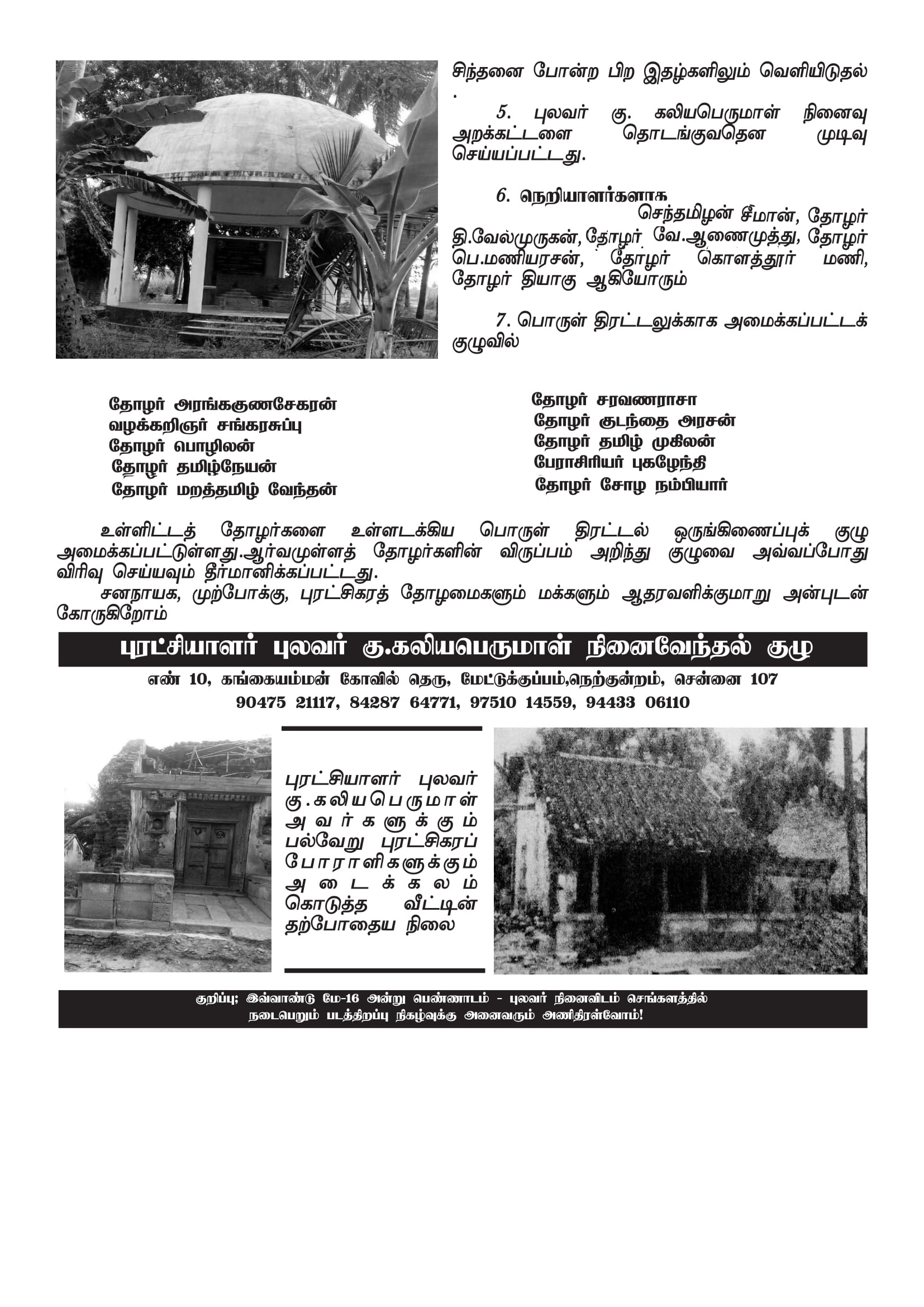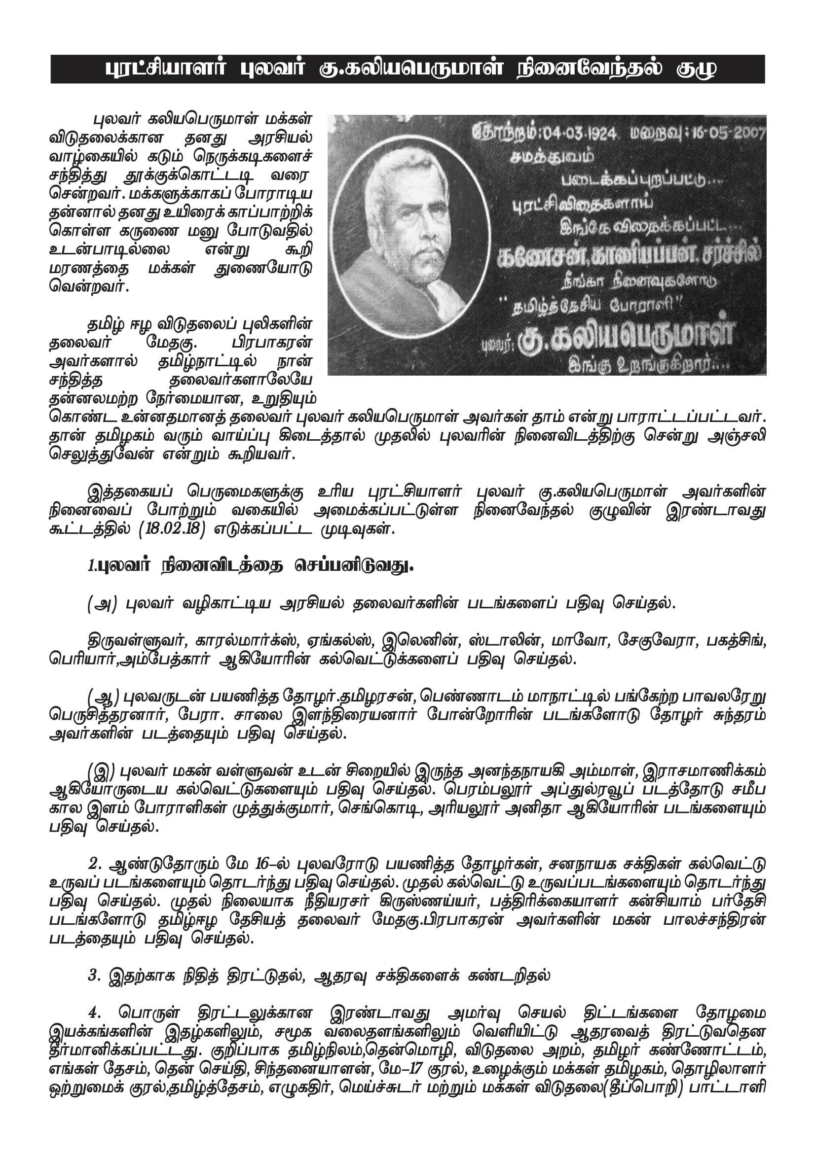 கட்சி செய்திகள் புரட்சியாளர் புலவர் கு.கலியபெருமாள் நினைவேந்தல் குழு அறிக்கை மார்ச் 5, 2018 1288 புரட்சியாளர் புலவர் கு.கலியபெருமாள் நினைவேந்தல் குழு அறிக்கை புரட்சியாளர் புலவர் கு