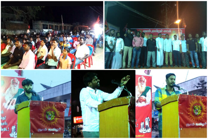 மரக்காணம் பகுதிகளில் ஹைட்ரோ கார்பன் திட்டத்தை அனுமதித்து எண்ணெய் கிணறுகள் அமைப்பதைக் கண்டித்தும், ஸ்டெர்லைட ஆலை, நியூட்ரினோ ஆய்வுக்கூடம், காவிரி நதிநீர் பங்கீட்டுச் சிக்கல் என்று தொடர்ந்து தமிழகம் வஞ்சிக்கப்படுவதை பொது மக்களுக்கு விழிப்புணர்வு ஏற்படுத்தியும் மத்திய மாநில அரசுகளைக் கண்டித்தும் திண்டிவனம் தொகுதி நாம் தமிழர் கட்சி சார்பில் கண்டன பொதுக்கூட்டம் 31- 03-2018 அன்று மாலை 4 மணி முதல் 9 மணி வரை மரக்காணம் சால்ட் ரோடு அருகில் அண்ணா திடலில் நடைபெற்றது.