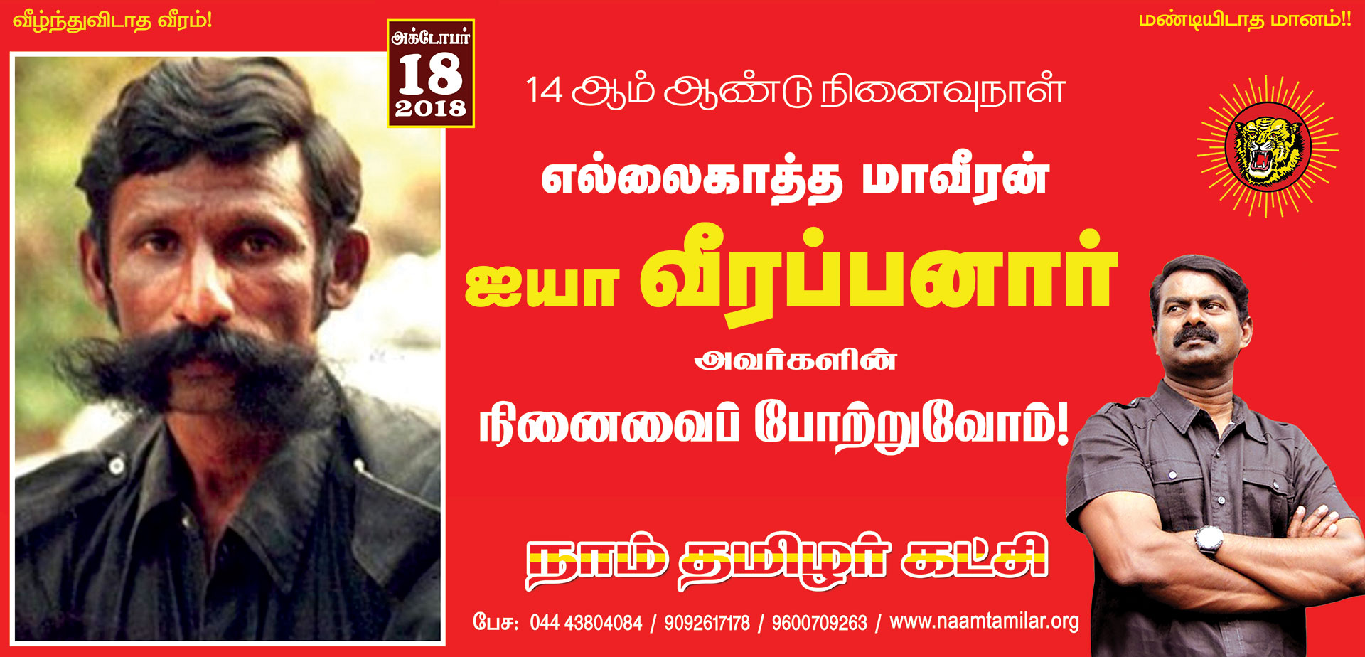 அறிவிப்பு: அக்.18, ஐயா வீரப்பனார் 14ஆம் ஆண்டு நினைவுநாள் – மலர் வணக்க நிகழ்வு | நாம் தமிழர் கட்சி
