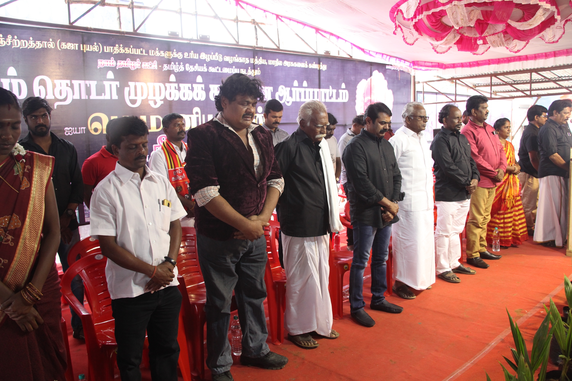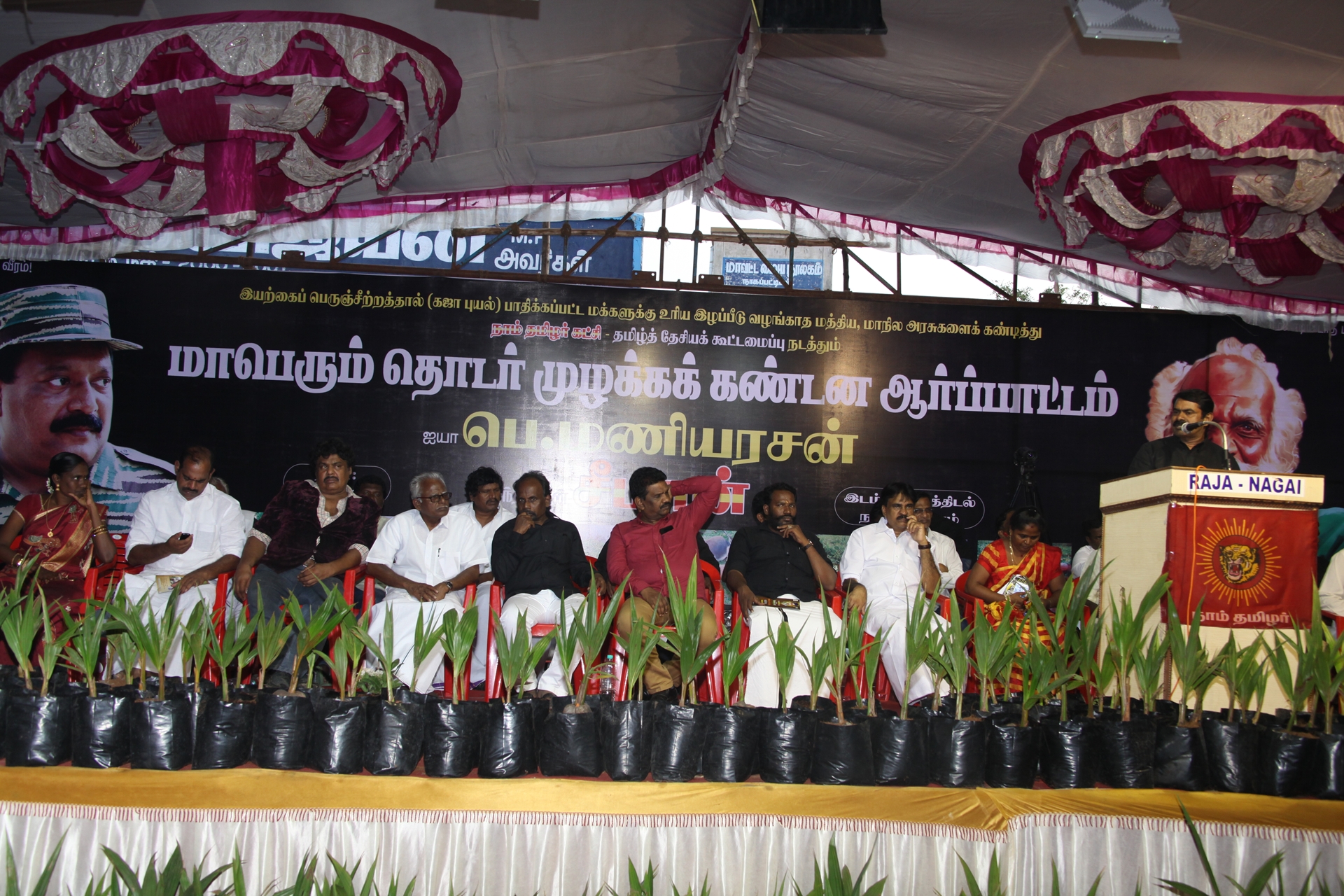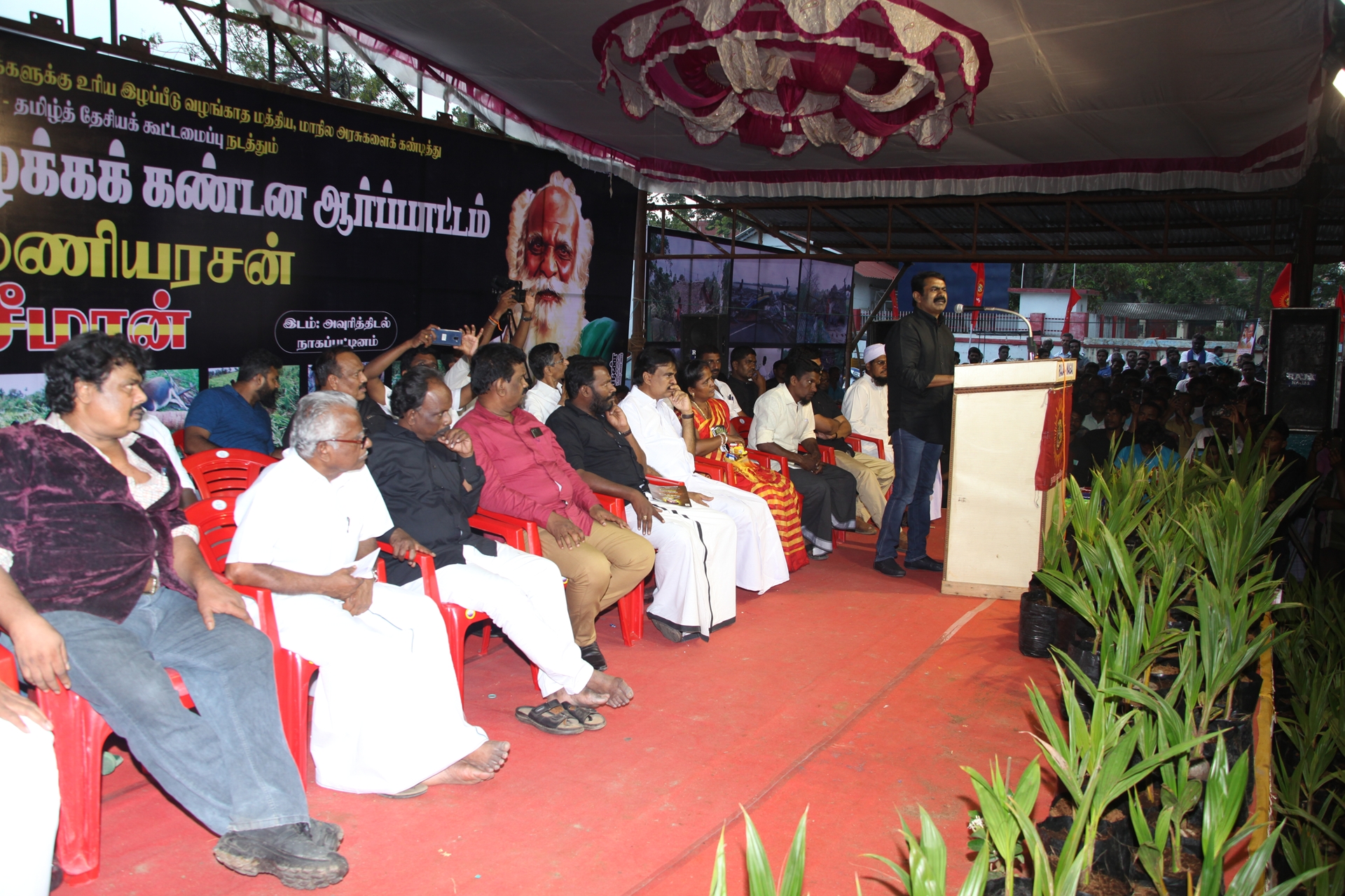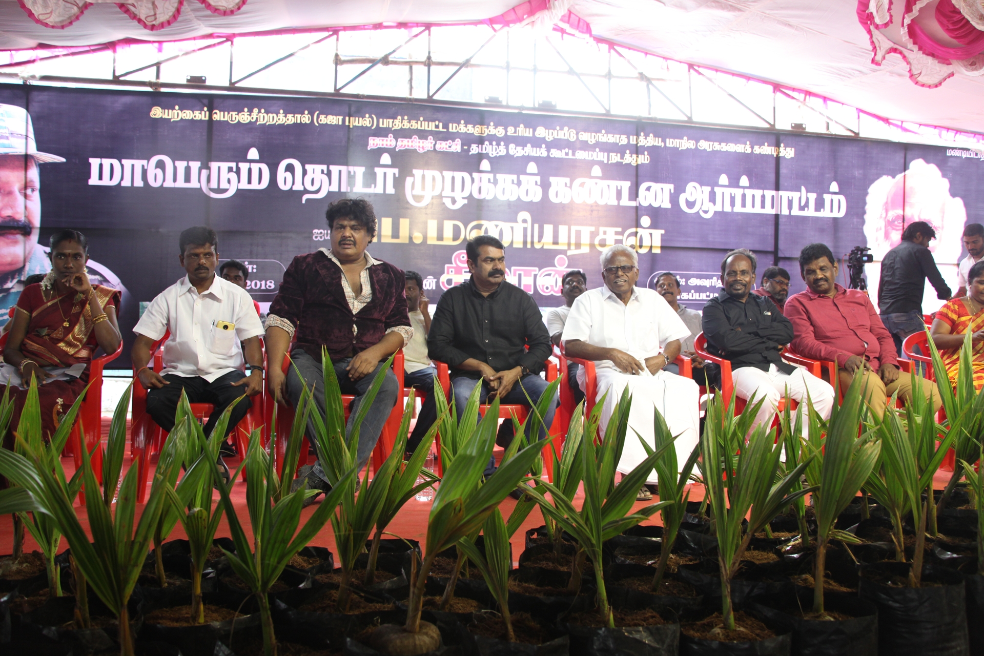கஜா எனும் பெரும்புயலின் கடுஞ்சீற்றத்தால் தமிழகத்தின் வளமான 8 மாவட்டங்கள் பெரும்பாதிப்பிற்குள்ளாகியுள்ளது. புயலால் பாதிக்கப்பட்டு 40 நாள்களுக்கு மேலாகியும் மீளமுடியாது கண்ணீரில் தத்தளிக்கும் மக்களைப் புறக்கணிக்கும் மத்திய, மாநில அரசுகளைக் கண்டித்து நாம் தமிழர் கட்சி மற்றும் தமிழ்த்தேசியக் கூட்டமைப்பு நடத்தும் மாபெரும் தொடர் முழக்க கண்டன ஆர்ப்பாட்டம் நேற்று 29-12-2018 சனிக்கிழமை காலை 10 மணிமுதல் மாலை 06 மணிவரையிலும் நாகப்பட்டினம் அவுரித் திடலில் தமிழ்த்தேசியப் பேரியக்கத்தின் தலைவர் பெ.மணியரசன் தலைமையில் நடைபெற்றது.
