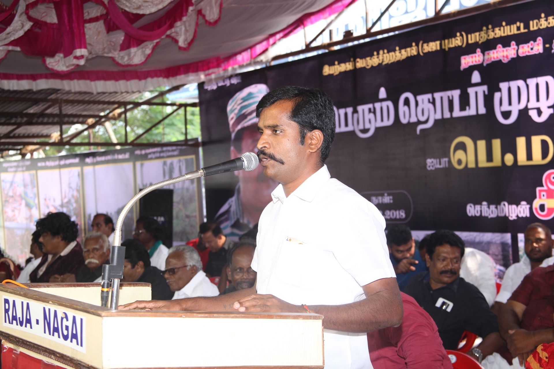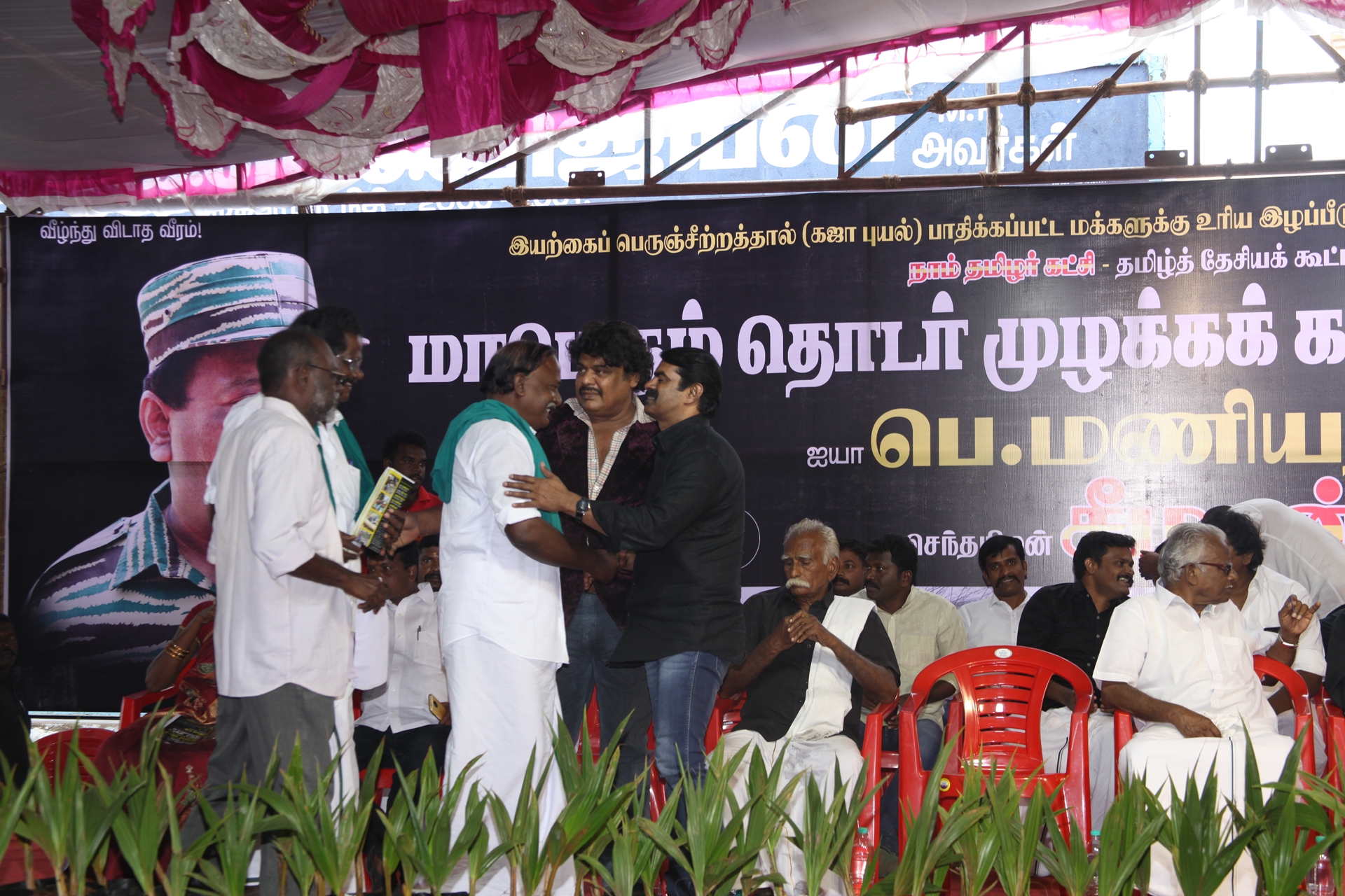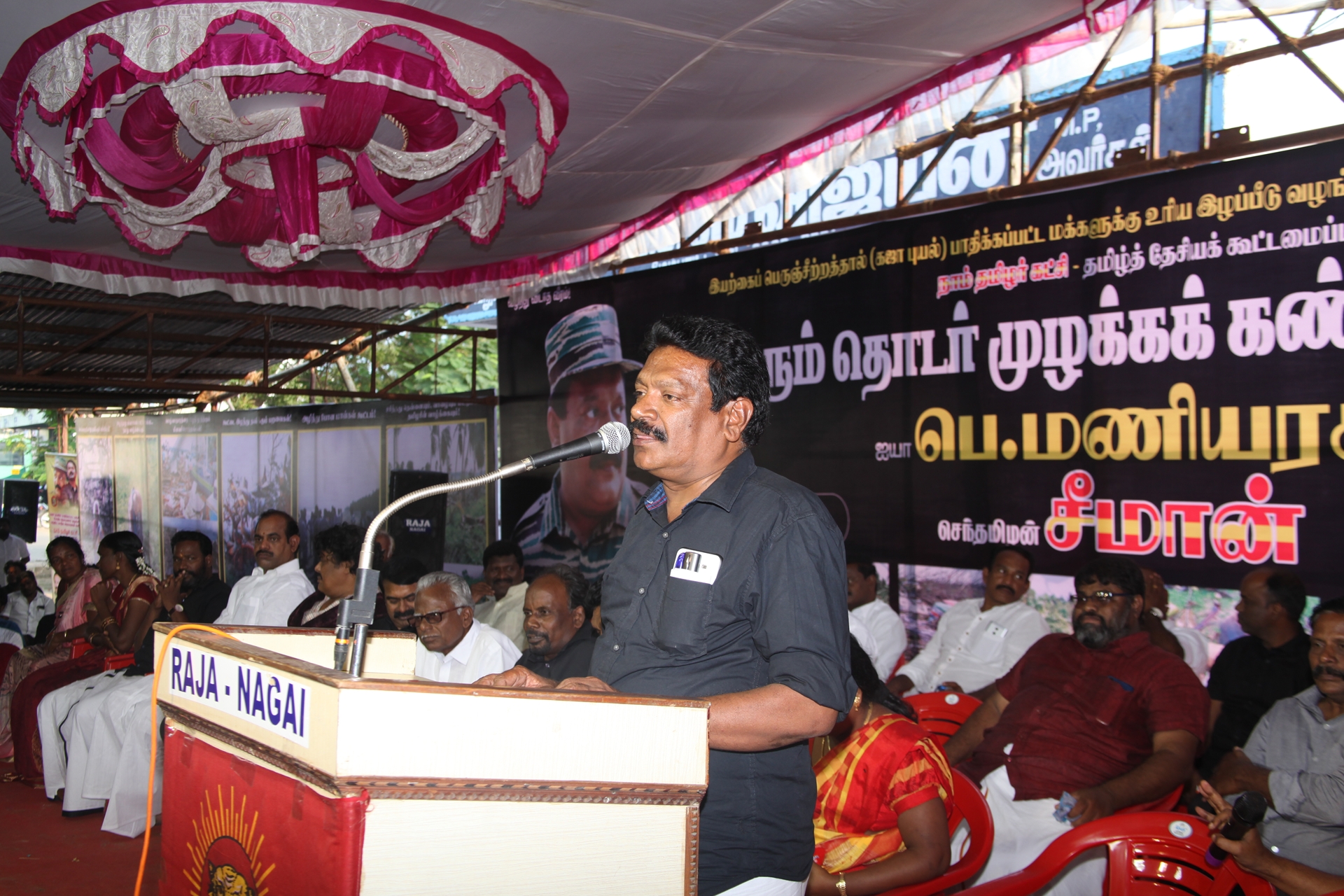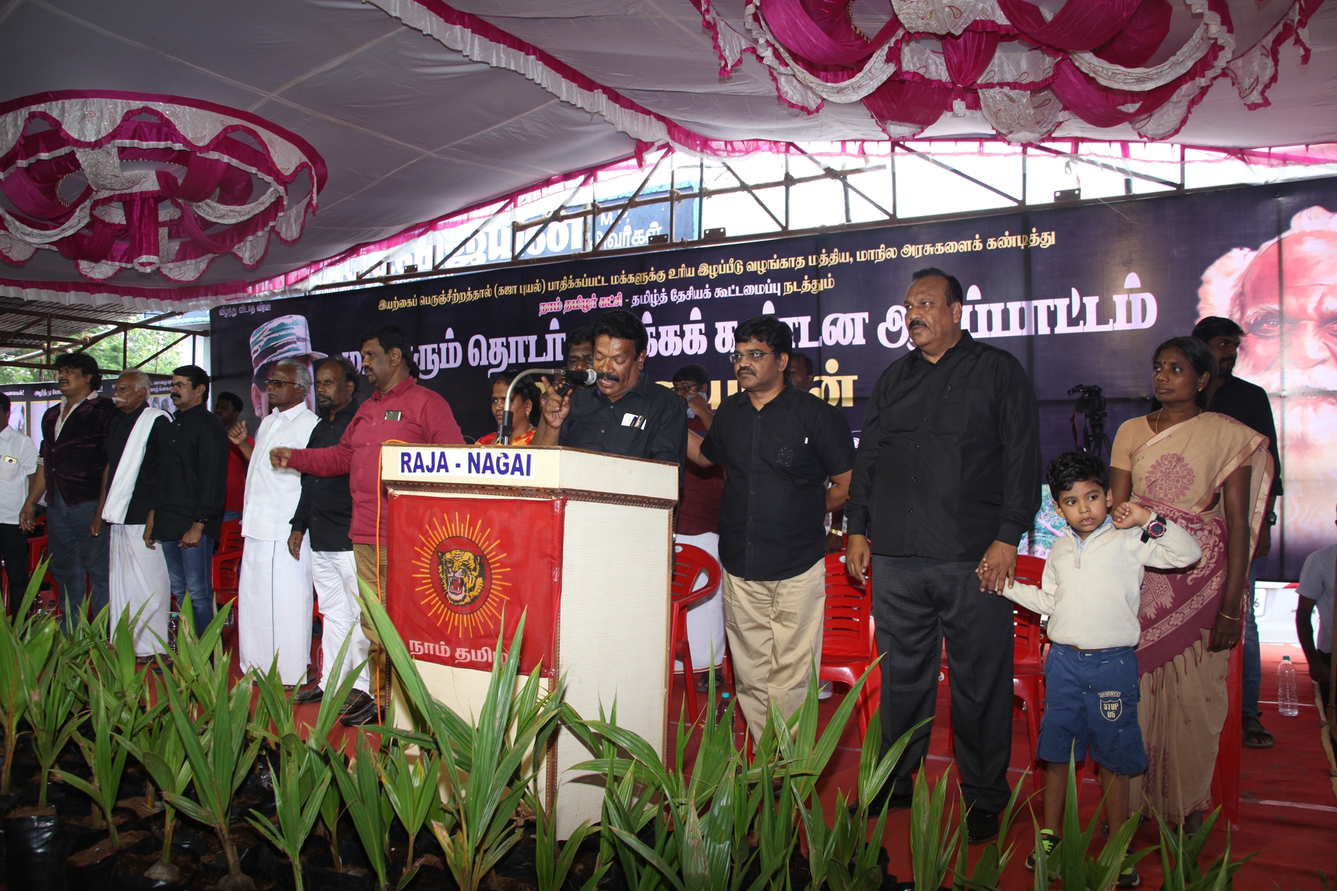 கஜா எனும் பெரும்புயலின் கடுஞ்சீற்றத்தால் தமிழகத்தின் வளமான 8 மாவட்டங்கள் பெரும்பாதிப்பிற்குள்ளாகியுள்ளது. புயலால் பாதிக்கப்பட்டு 40 நாள்களுக்கு மேலாகியும் மீளமுடியாது கண்ணீரில் தத்தளிக்கும் மக்களைப் புறக்கணிக்கும் மத்திய, மாநில அரசுகளைக் கண்டித்து நாம் தமிழர் கட்சி மற்றும் தமிழ்த்தேசியக் கூட்டமைப்பு நடத்தும் மாபெரும் தொடர் முழக்க கண்டன ஆர்ப்பாட்டம் நேற்று 29-12-2018 சனிக்கிழமை காலை 10 மணிமுதல் மாலை 06 மணிவரையிலும் நாகப்பட்டினம் அவுரித் திடலில் தமிழ்த்தேசியப் பேரியக்கத்தின் தலைவர் பெ.மணியரசன் தலைமையில் நடைபெற்றது.