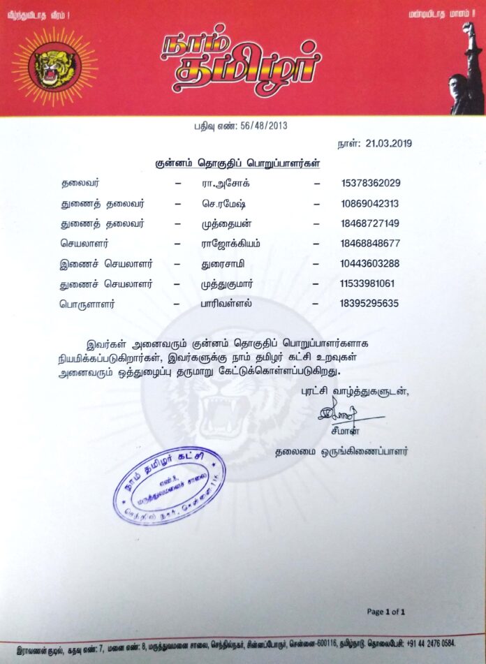 தலைமை அறிவிப்பு: குன்னம் தொகுதிப் பொறுப்பாளர்கள் பட்டியல்