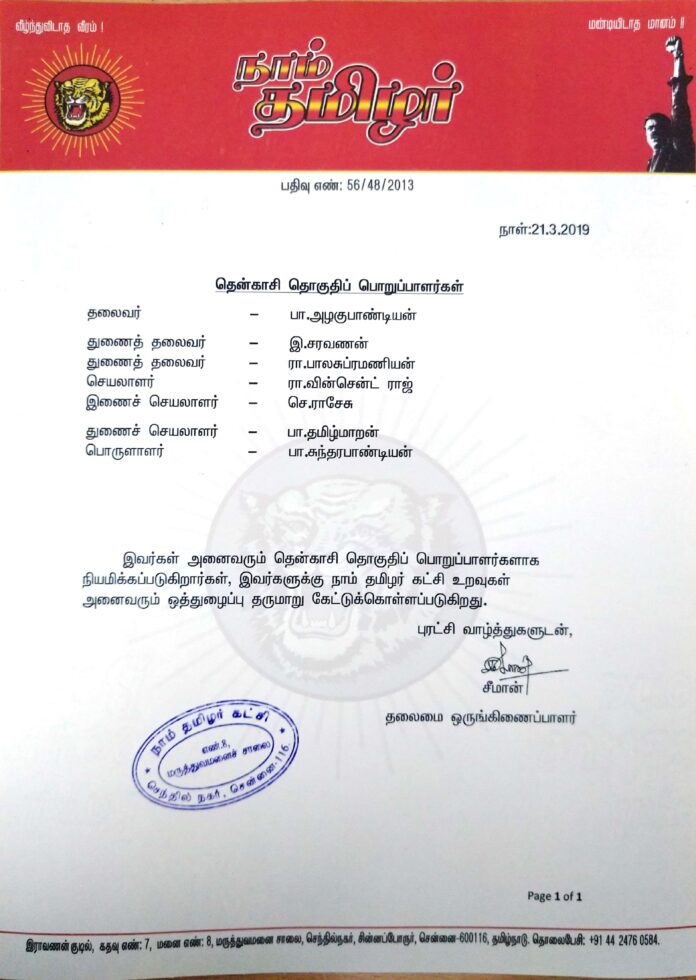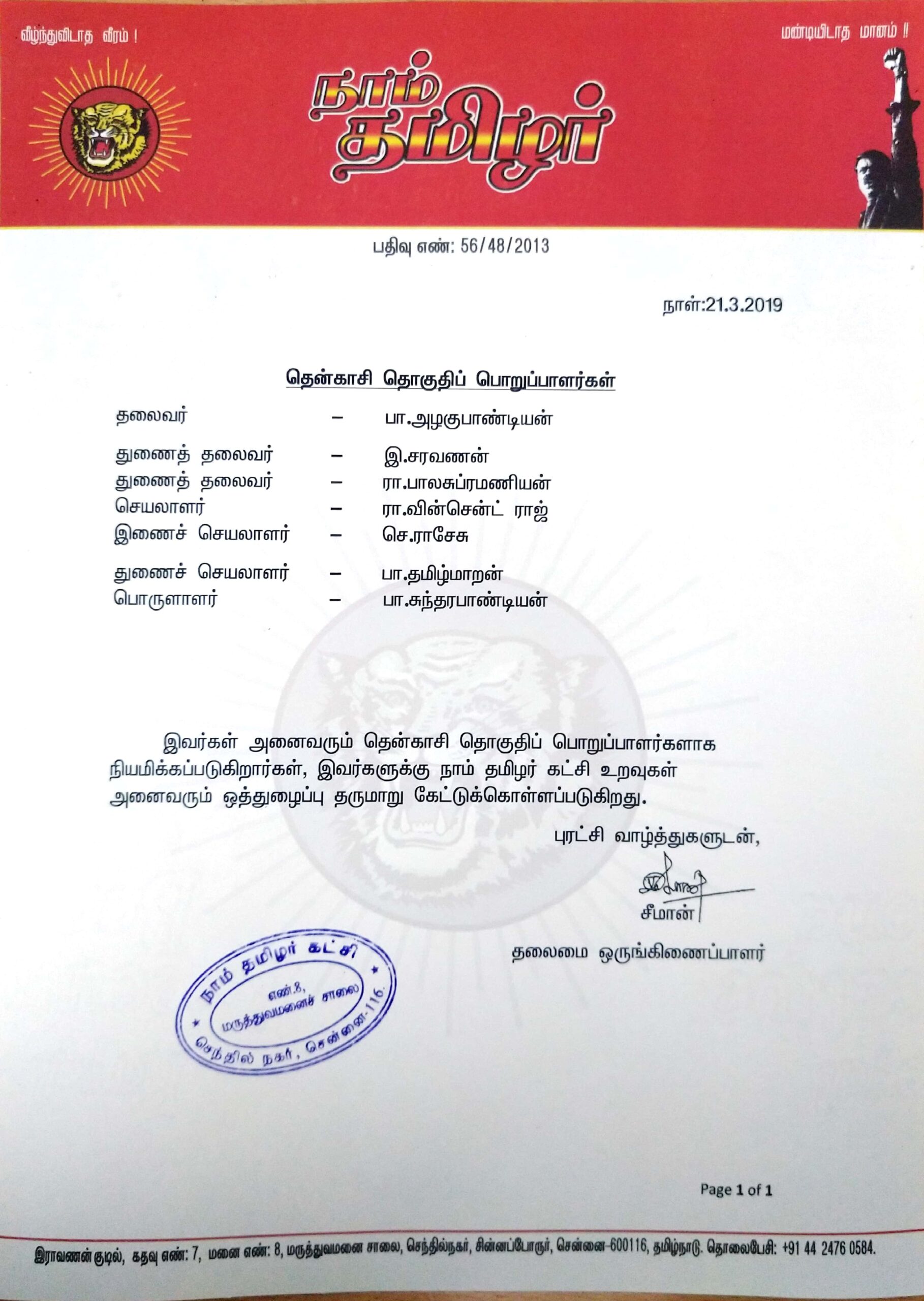 தலைமை அறிவிப்பு: தென்காசி தொகுதிப் பொறுப்பாளர்கள் பட்டியல்