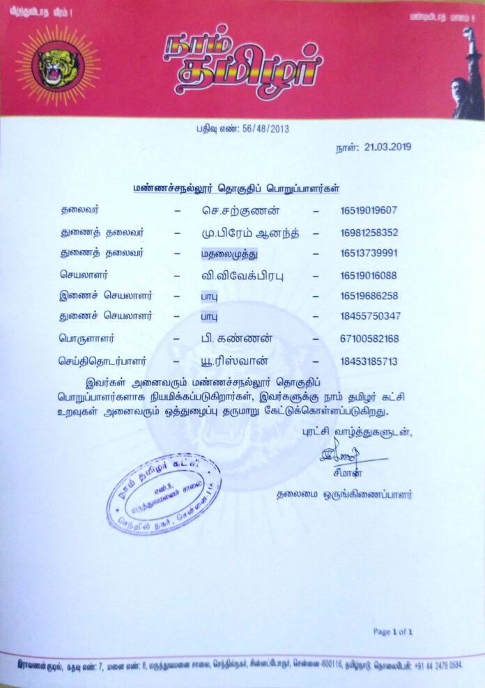 தலைமை அறிவிப்பு: மண்ணச்சநல்லூர் தொகுதிப் பொறுப்பாளர்கள் பட்டியல்