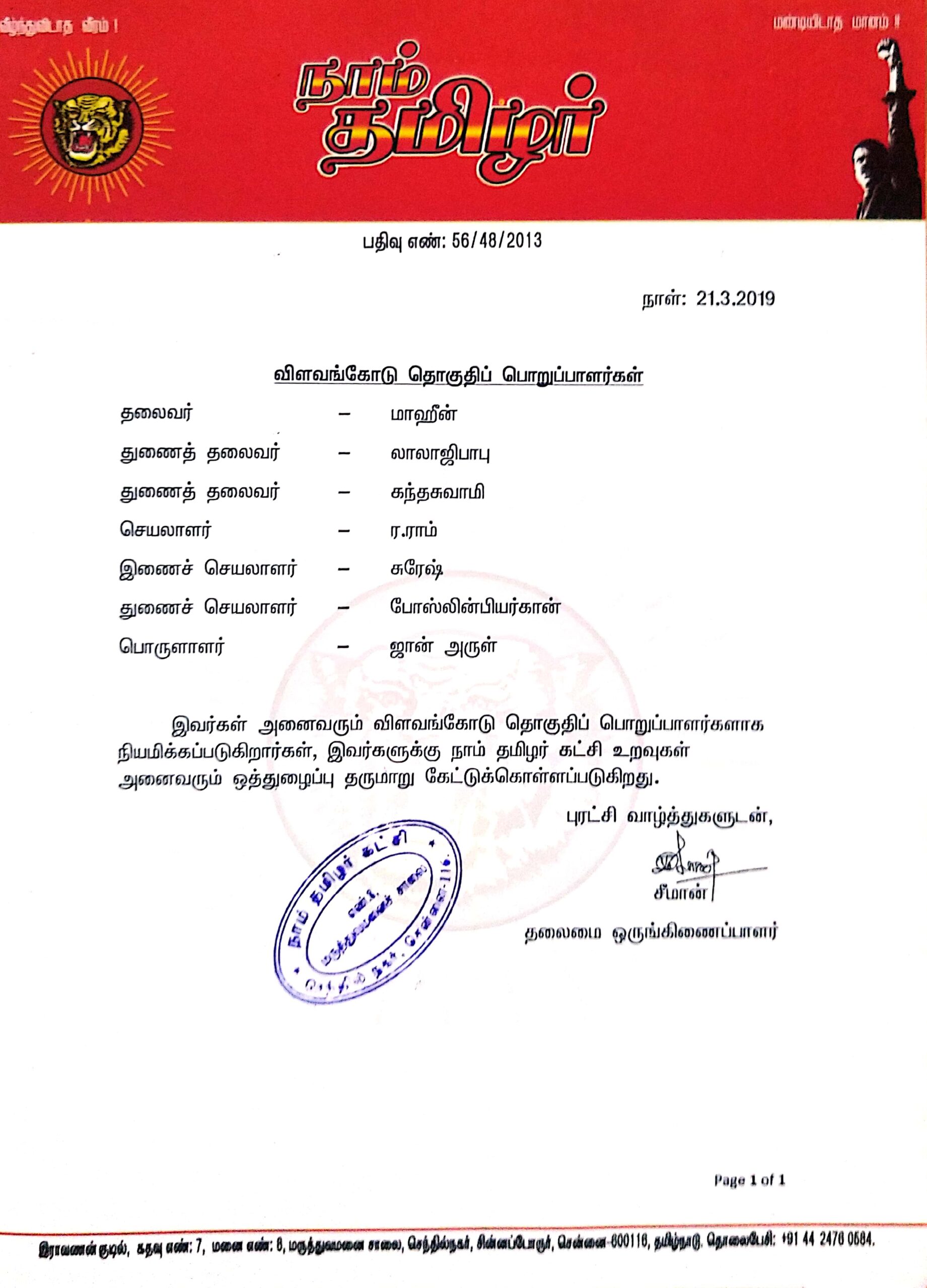 தலைமை அறிவிப்பு: விளவங்கோடு தொகுதிப் பொறுப்பாளர்கள் பட்டியல்
