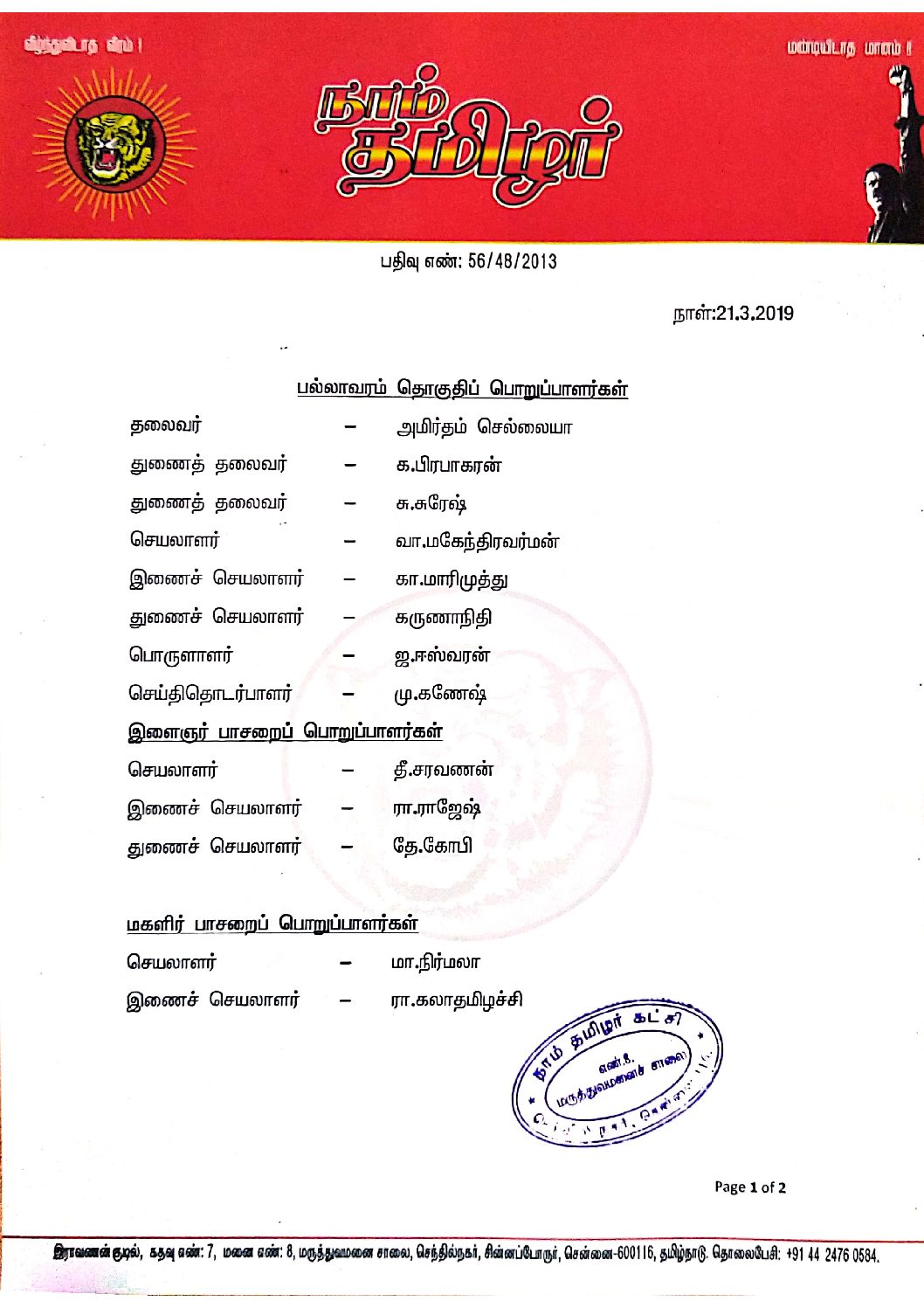 தலைமை அறிவிப்பு: பல்லாவரம் தொகுதிப் பொறுப்பாளர்கள் பட்டியல்