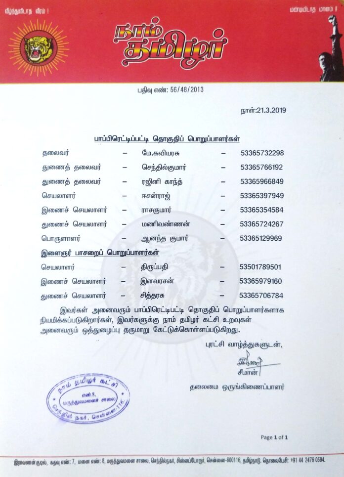 தலைமை அறிவிப்பு: பாப்பிரெட்டிப்பட்டி தொகுதிப் பொறுப்பாளர்கள் பட்டியல்