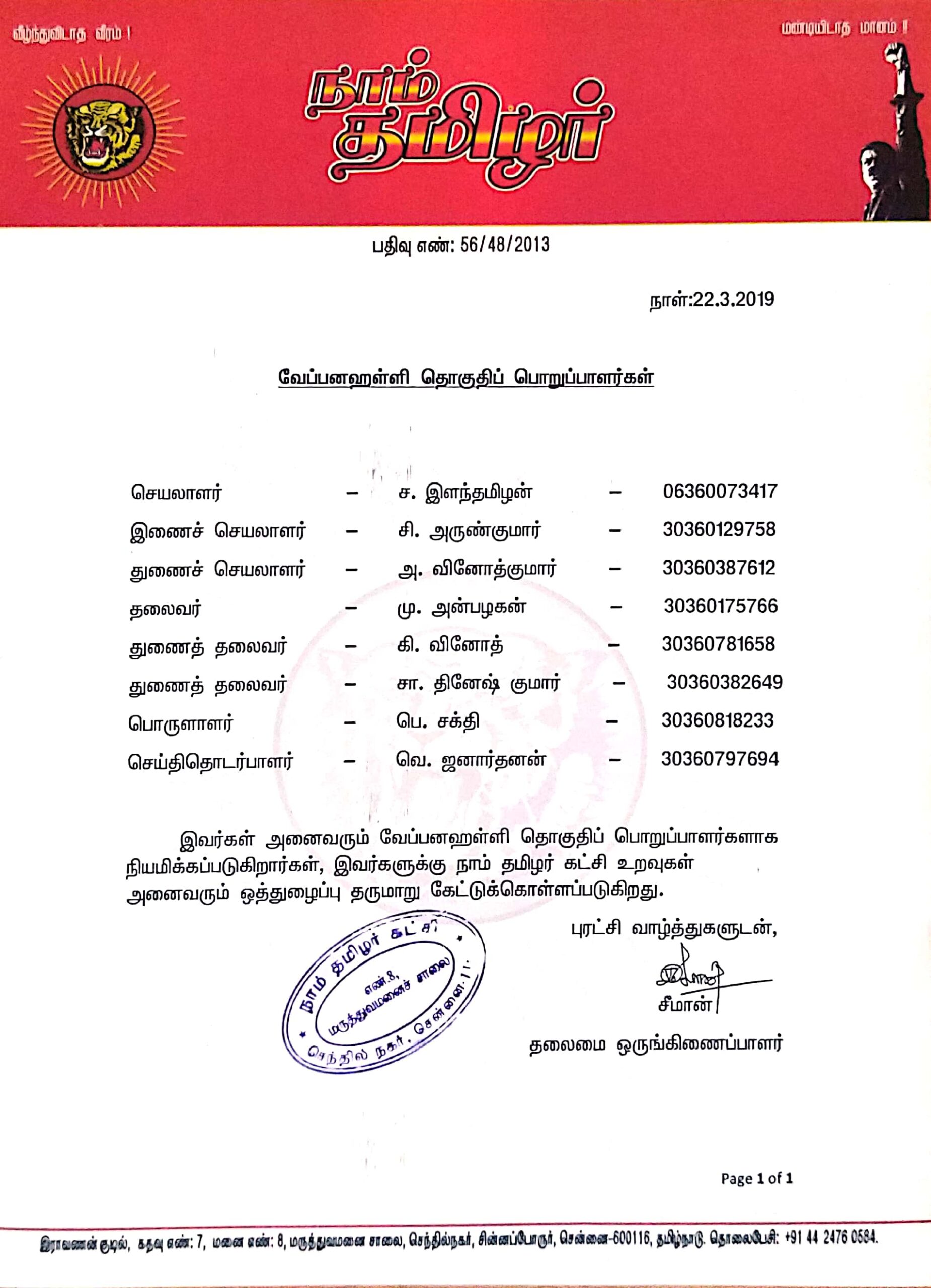 தலைமை அறிவிப்பு: வேப்பனஹள்ளி தொகுதிப் பொறுப்பாளர்கள் பட்டியல்