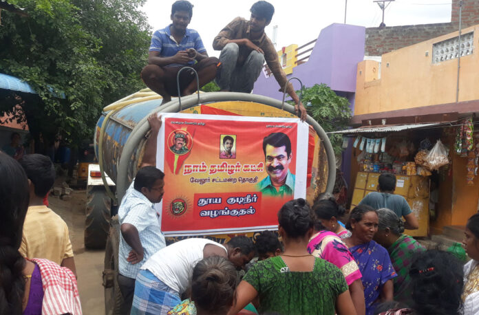 வேலூர்கட்சி செய்திகள்வேலூர் மாவட்டம் இலவச குடிநீர் வழங்குதல்-வேலூர் தொகுதி ஜூலை 3, 2019 118 வேலூர் தொகுதி நாம் தமிழர் கட்சி சார்பாக 37 வது வார்டு அம்மணன்குட்டை தெரு, சலவன்பேட்டைபேட்டையில் பொதுமக்களுக்கு இலவசமாக குடிநீர் வழங்கப்பட்டது