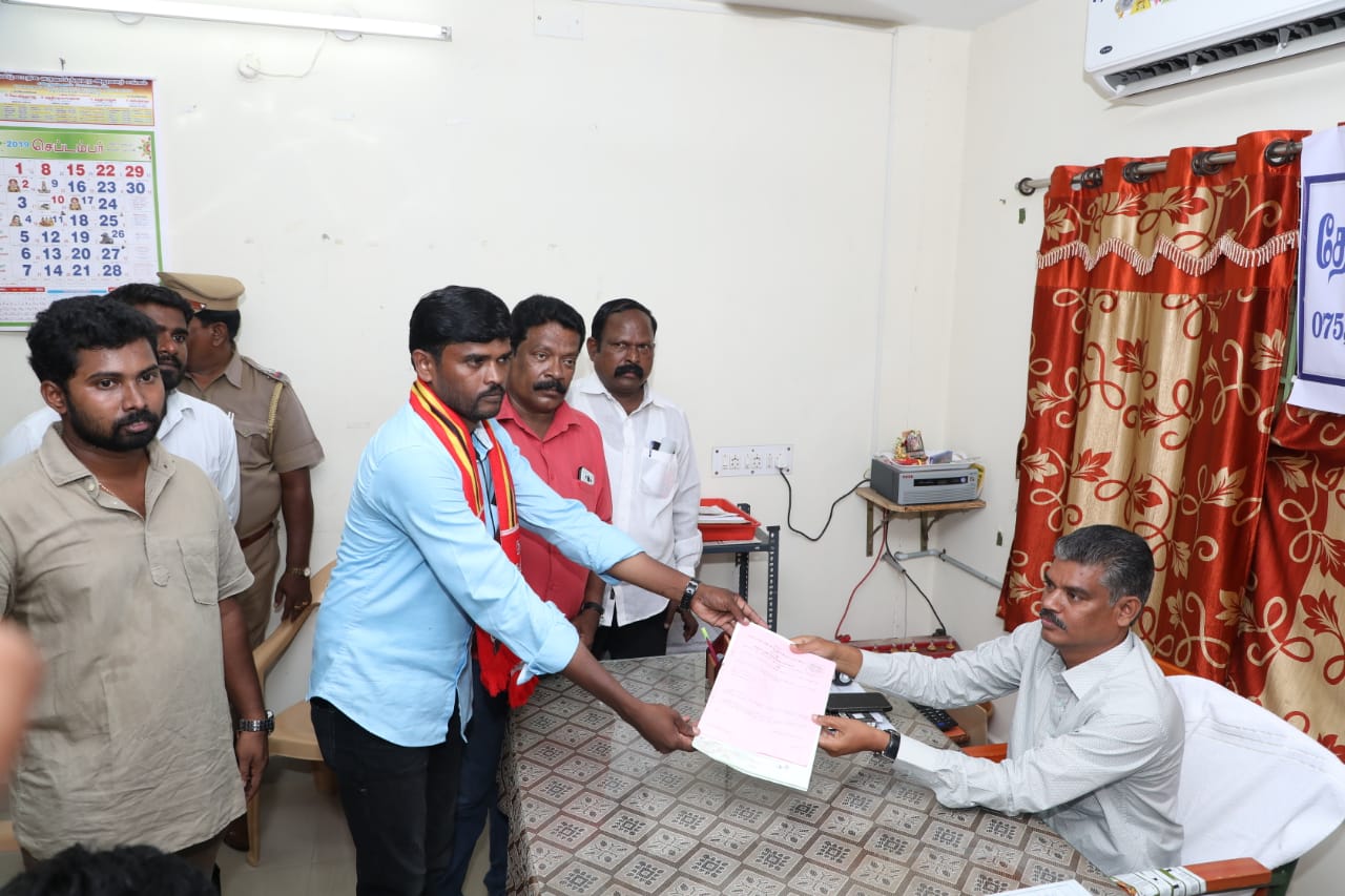 நாம் தமிழர் கட்சியின் உறுதிமொழியேற்று மாட்டுவண்டியில் ஊர்வலமாகச் சென்று விக்கிரவாண்டி தொகுதி தேர்தல் அதிகாரி அவர்களிடம் வேட்புமனு வழங்கினார். உடன் மாநில ஒருங்கிணைபாளர்கள் அன்புத்தென்னரசன், விருகை இராஜேந்திரன், தலைமை நிலையச் செயலாளர் செந்தில்குமார் மற்றும் விழுப்புரம் மாவட்டப் பொறுப்பாளர்கள் உடனிருந்தனர்.