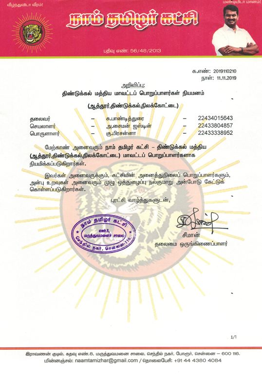 கட்சி செய்திகள் தலைமை அறிவிப்பு: திண்டுக்கல் மத்திய மாவட்டப் பொறுப்பாளர்கள் நியமனம் – 2019 நவம்பர் 14, 2019 54 தலைமை அறிவிப்பு: திண்டுக்கல் மத்திய மாவட்டப் பொறுப்பாளர்கள் நியமனம் – 2019