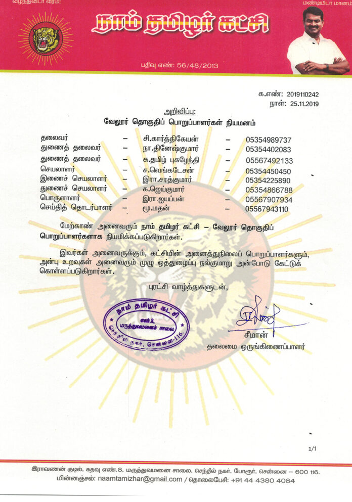 தலைமைச் செய்திகள்கட்சி செய்திகள்அறிவிப்புகள்பொறுப்பாளர்கள் நியமனம்வேலூர் மாவட்டம் தலைமை அறிவிப்பு: வேலூர் தொகுதிப் பொறுப்பாளர்கள் நியமனம் டிசம்பர் 4, 2019 30 தலைமை அறிவிப்பு: வேலூர் தொகுதிப் பொறுப்பாளர்கள் நியமனம்