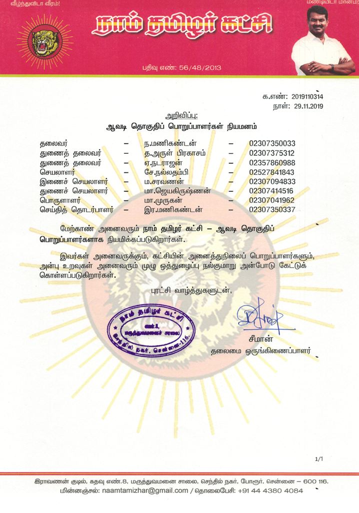 தலைமை அறிவிப்பு: ஆவடி தொகுதிப் பொறுப்பாளர்கள் நியமனம்