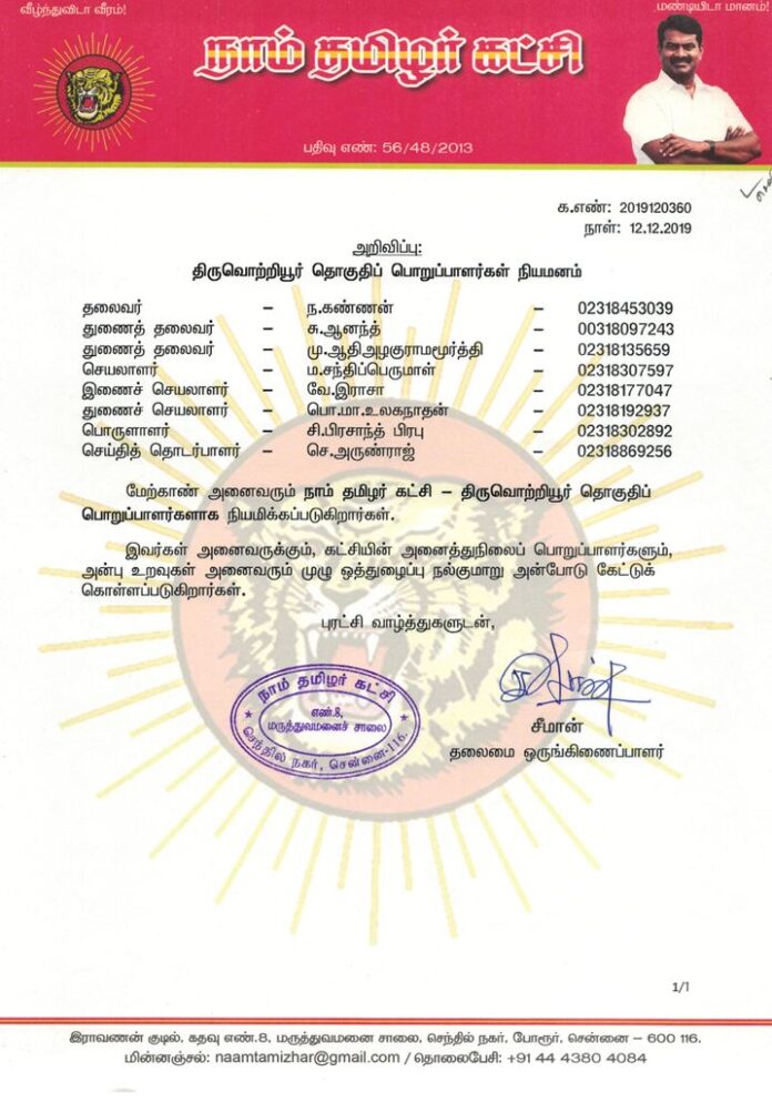 தலைமைச் செய்திகள்கட்சி செய்திகள்திருவள்ளூர் மாவட்டம்தமிழ்நாட்டுக் கிளைகள்அறிவிப்புகள்பொறுப்பாளர்கள் நியமனம்திருவொற்றியூர் தலைமை அறிவிப்பு: திருவொற்றியூர் தொகுதிப் பொறுப்பாளர்கள் நியமனம் – 2019 டிசம்பர் 31, 2019 135