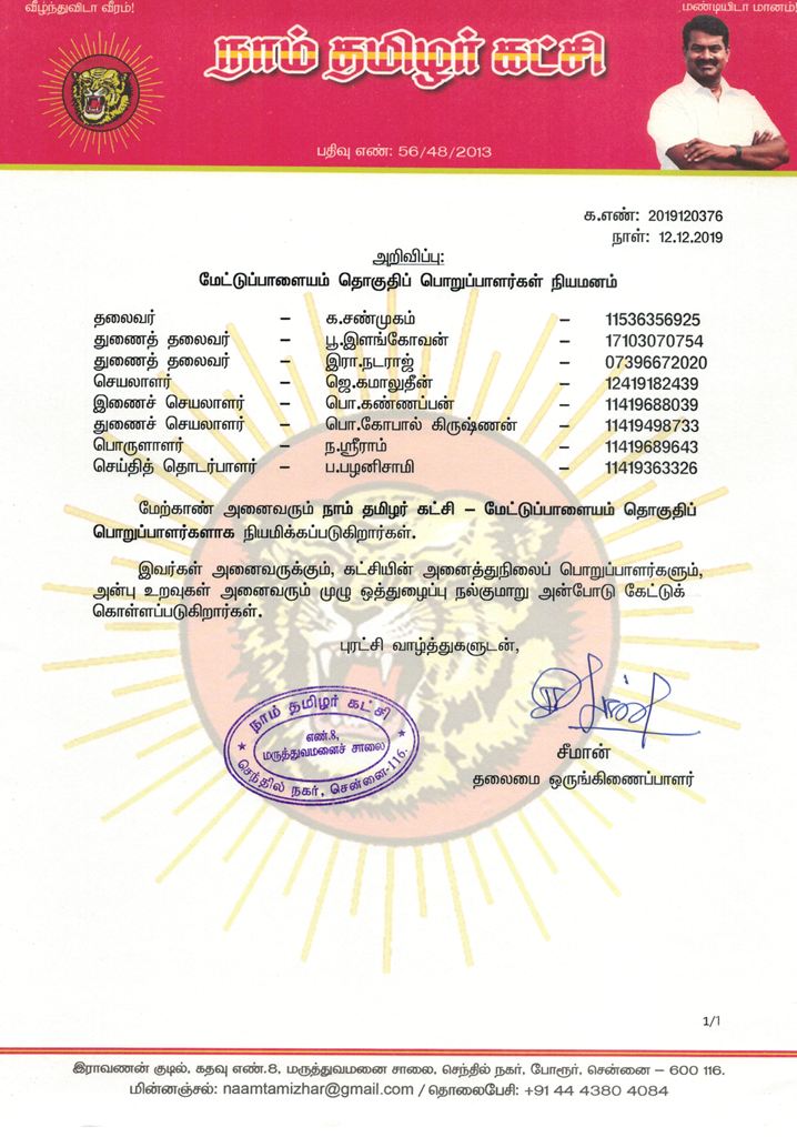 தலைமைச் செய்திகள்கட்சி செய்திகள்அறிவிப்புகள்பொறுப்பாளர்கள் நியமனம் தலைமை அறிவிப்பு: மேட்டுப்பாளையம் தொகுதிப் பொறுப்பாளர்கள் நியமனம் டிசம்பர் 31, 2019 152