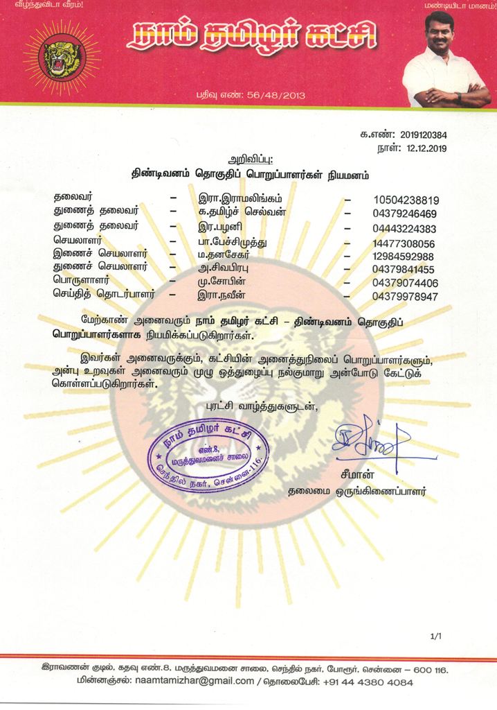 தலைமைச் செய்திகள்கட்சி செய்திகள்அறிவிப்புகள்பொறுப்பாளர்கள் நியமனம் தலைமை அறிவிப்பு: திண்டிவனம் தொகுதிப் பொறுப்பாளர்கள் நியமனம் டிசம்பர் 31, 2019 145