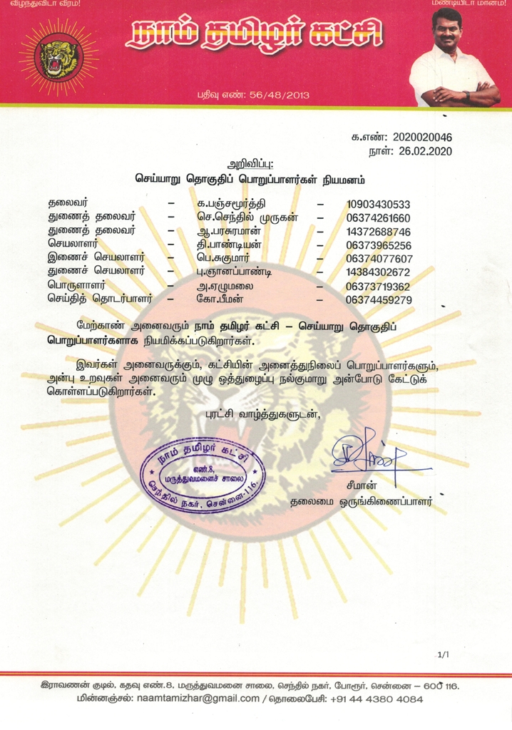 தலைமை அறிவிப்பு: செய்யாறு தொகுதிப் பொறுப்பாளர்கள் நியமனம்
