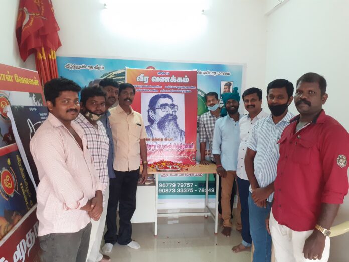 பாவலரேறு பெருஞ்சித்திரனாரின்  நினைவு நாளையொட்டி 12.6.2020 மாலை 5 மணிக்கு பல்லடம் சட்டமன்றத் தொகுதி ராயர்பாளையம் அலுவலகத்தில் புகழ் வணக்கம் செலுத்தப்பட்டது.