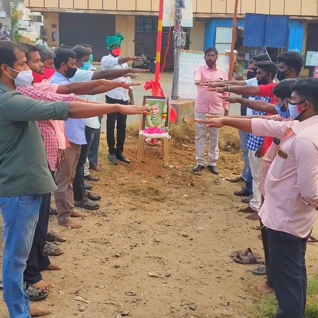 07/07/2020 பல்லடம் சட்டமன்ற தொகுதிக்குட்பட்ட கல்லாங்காடு பகுதியில் கொடியேற்றும் நிகழ்வும் இரட்டைமலை சீனிவாசன் அவர்களுக்கு புகழ் வணக்கம் செலுத்தப்பட்டது