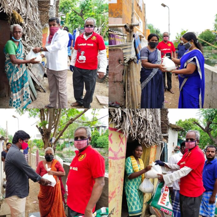 05.07.2020 அன்று வடசென்னை மேற்கு மாவட்டம் திரு.வி.க நகர் தொகுதியின் சார்பில் ஓட்டேரி மேம்பாலம் அருகில் கொரோனா ஊரடங்கால் பாதிக்கப்பட்டு வறுமையில் வசிக்கும் 35 குடும்பங்களுக்கு நிவாரண பொருட்கள் கொடுக்கப்பட்டது.