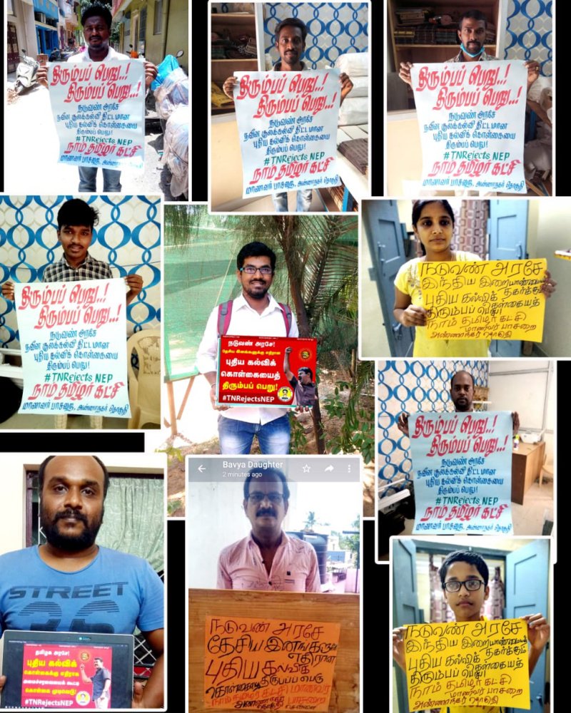 புதிய கல்விகொள்கையை திரும்ப பெற வலியுறுத்தி பதாகை ஏந்தும் போராட்டம்- அண்ணா நகர் தொகுதி