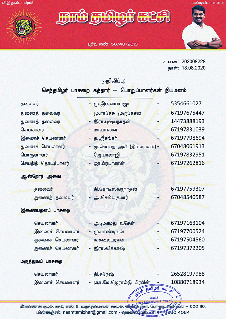 தலைமை அறிவிப்பு:  செந்தமிழர் பாசறை கத்தார் – பொறுப்பாளர்கள் நியமனம் | க.எண்: 202008228 | நாள்: 18.08.2020