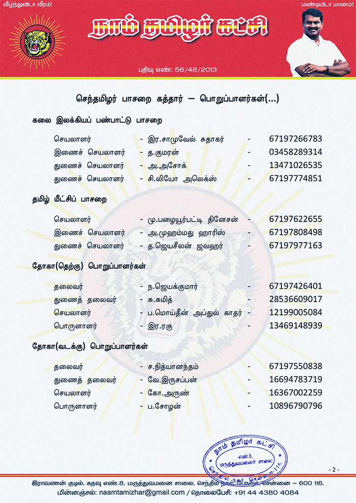 இவர்கள் அனைவருக்கும், கட்சியின் அனைத்துநிலைப் பொறுப்பாளர்களும், அன்பு உறவுகள் அனைவரும் முழு ஒத்துழைப்பு நல்குமாறு அன்போடு கேட்டுக் கொள்ளப்படுகிறார்கள்.