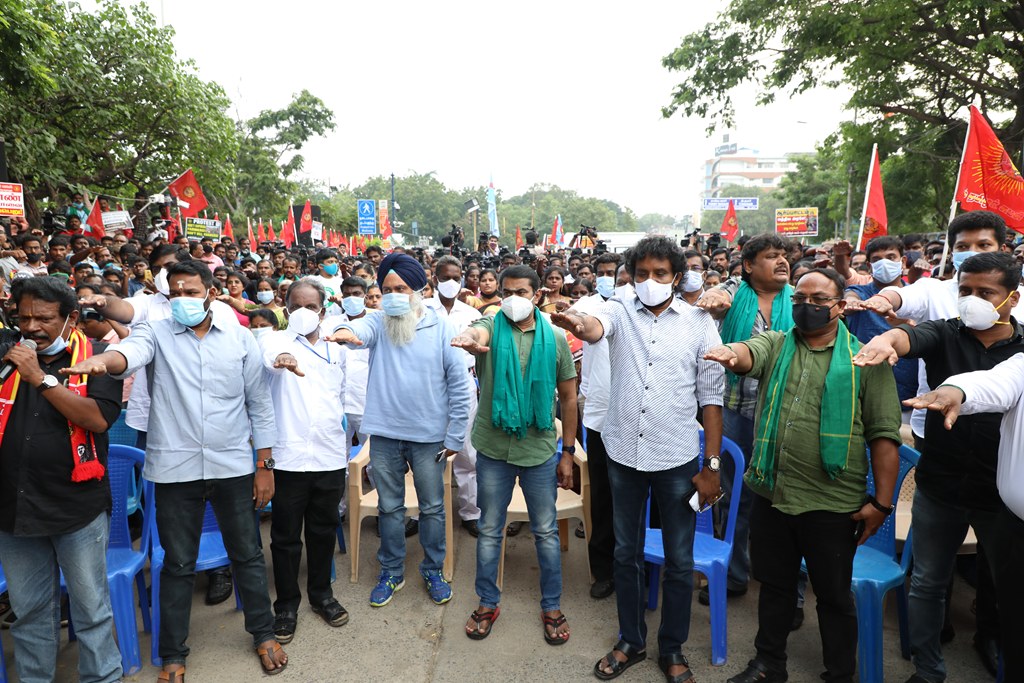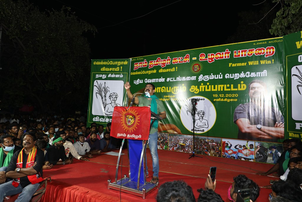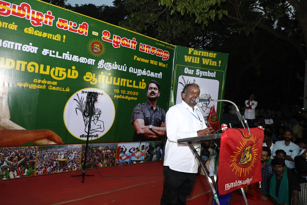 வேளாண் சட்டங்களைத் திரும்பப்பெற வலியுறுத்தியும், டெல்லி விவசாயிகள் போராட்டத்திற்கு ஆதரவு தெரிவித்தும் நாம் தமிழர் கட்சி – உழவர் பாசறை நடத்திய மாபெரும் கண்டன ஆர்ப்பாட்டம் 19-12-2020 அன்று மாலை 04 மணியளவில் சென்னை, வள்ளுவர் கோட்டத்தில் நடைபெற்றது.