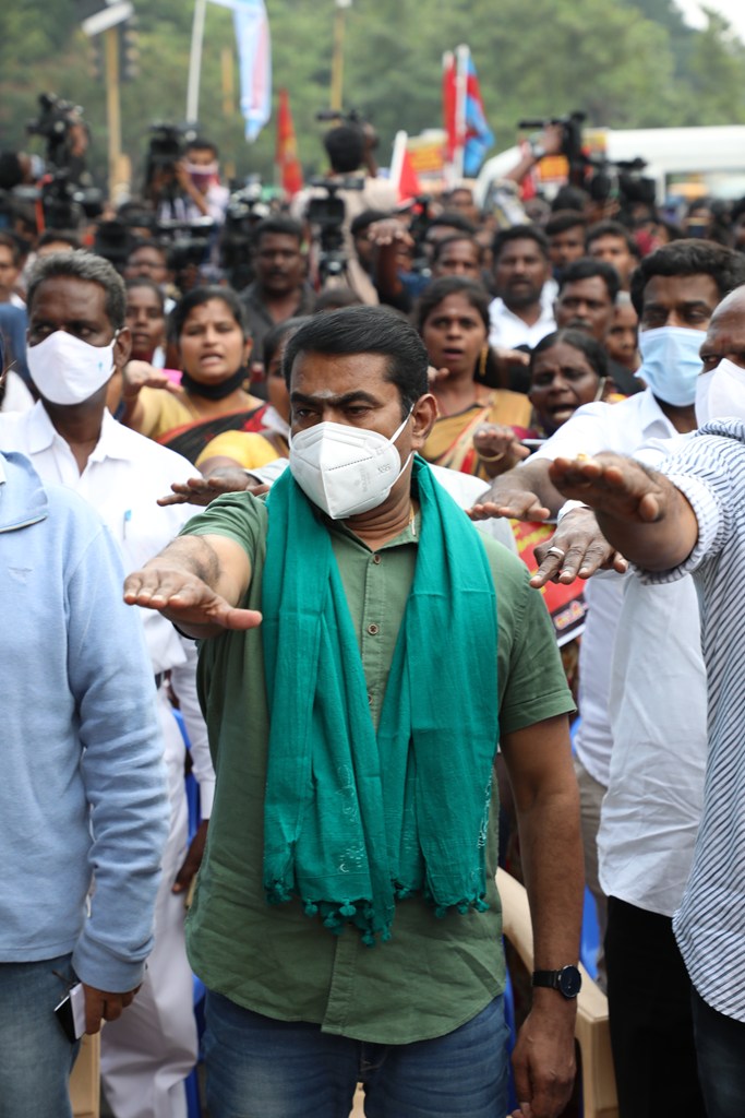 வேளாண் சட்டங்களைத் திரும்பப்பெற வலியுறுத்தி சீமான் தலைமையில் நடைபெற்ற மாபெரும் ஆர்ப்பாட்டம் | புகைப்படங்கள் மற்றும் காணொளிகள்