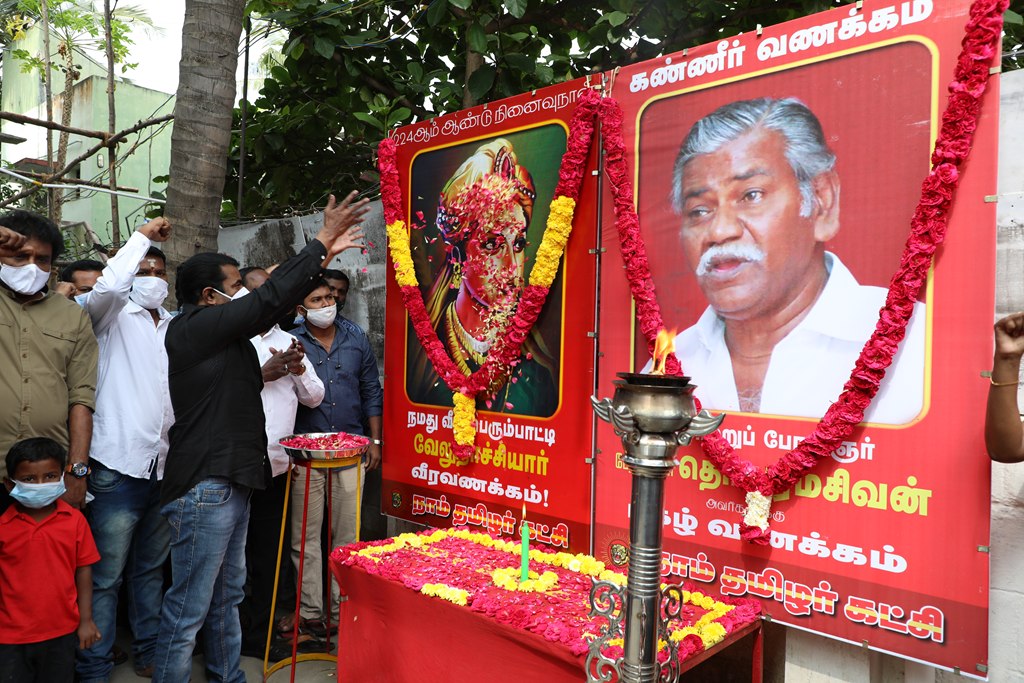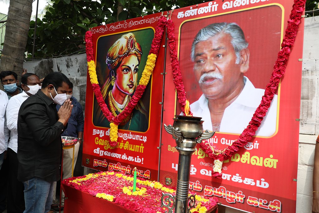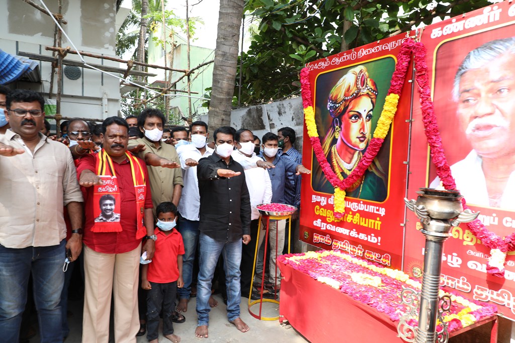 பெண் என்றால் பூவினும் மெல்லியவள்; வெட்கி, நாணி, தலைகுனிந்து நடப்பதுதான் பெண்மையின் பேரழகு என்று பேசிக்கொண்டிருந்த காலத்தில், கணவனை இழந்த கைம்பெண் வீட்டுக்குள்ளே முடங்கி அடங்கி ஒடுங்கி கிடப்பதுதான் விதி என்னும் சதியின் முகத்தில் காரி உமிழ்ந்த மானமறத்தி! பட்டங்கள் ஆள்வதும் சட்டங்கள் செய்வதும் பாரினில் பெண்கள் நடத்தவந்தோம்; எட்டு மறிவினில் ஆணுக் கிங்கேபெண் இளைப்பில்லை காணென்று கும்மியடி! – என்ற பெரும்பாவலன் பாரதியின் பாட்டுக்கு அன்றே பொருளாய் வாழ்ந்த மாதரசி! அடிமைப்பட்டுக்கிடந்த அன்னை நிலத்தை மீட்டெடுக்க வாளும் வேலும் ஏந்தி போர்க்களம் புகுந்த புரட்சிக்காரி! இழந்துவிட்ட நிலத்தை மீண்டும் அடித்து மீட்ட எங்கள் குல மாதரின் குலவிளக்கு! தமிழ்ப் பேரினத்தின் வீரப்பெரும்பாட்டி வேலுநாச்சியார் அவர்களுக்கு 224ஆம் ஆண்டு நினைவுநாளான இன்று 25-12-2020 காலை 10 மணியளவில் தலைமை அலுவலகம், இராவணன் குடிலில் நடைபெற்ற வீரவணக்க நிகழ்வு மற்றும் மறைந்த முதுபெரும் தமிழறிஞர், தொல் தமிழ் பண்பாட்டு ஆய்வாளர், எழுத்தாளர், தமிழ்த்துறை பேராசிரியர் தொ.பரமசிவன் அவர்களுக்கு புகழ் வணக்க நிகழ்வில் சீமான் அவர்கள் பங்கேற்று இருவரது திருவுருவப்படத்திற்கு முன் நினைவுச் சுடரேற்றி மலர்வணக்கம் புகழ் வணக்கம் செலுத்தினார்.
