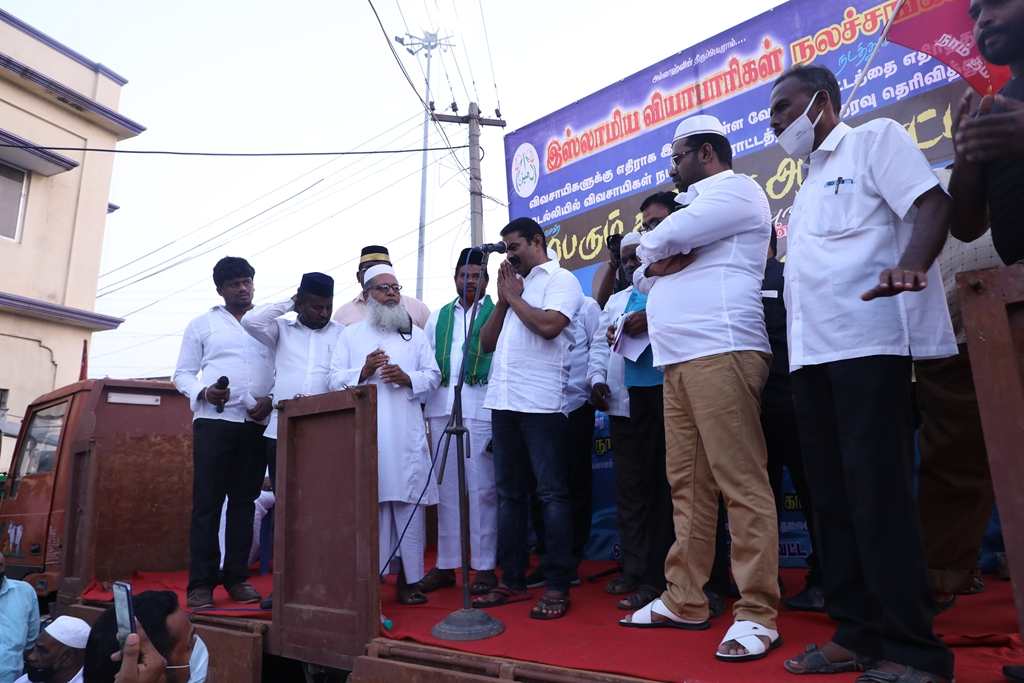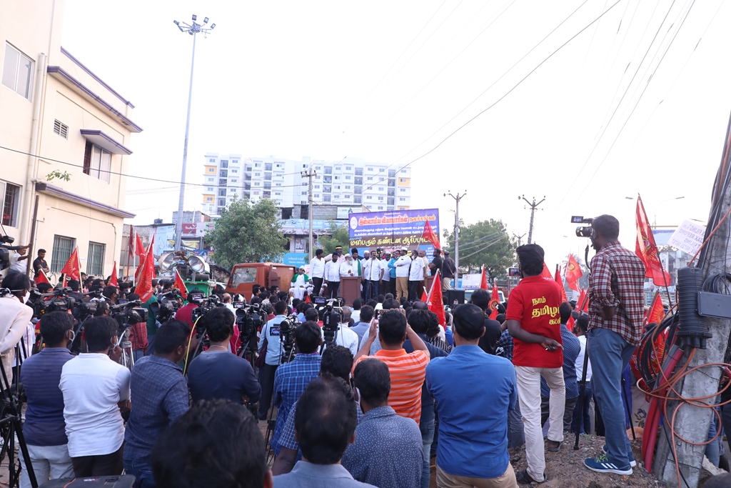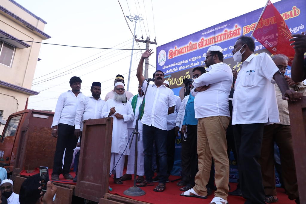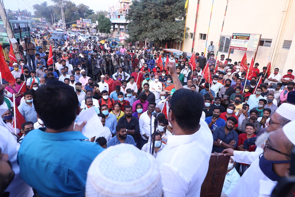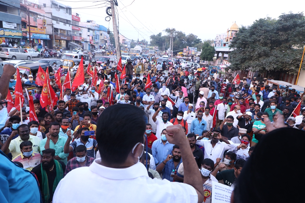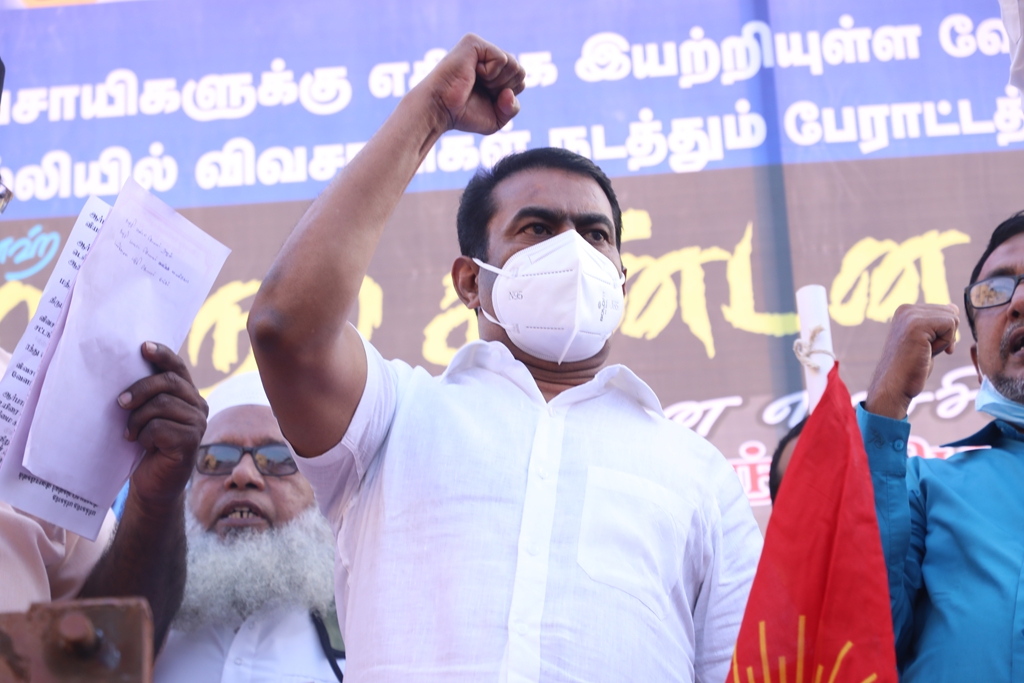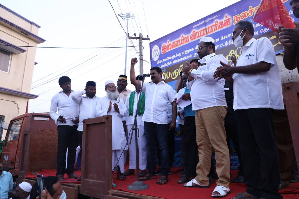 விவசாயிகளின் நலனுக்கும் உரிமைகளுக்கும் எதிராக மத்திய அரசு இயற்றியுள்ள வேளாண் சட்டங்களை எதிர்த்தும், வேளாண் சட்டங்களைத் திரும்பப்பெற வலியுறுத்தி டெல்லியில் நடைபெற்றுவரும் விவசாயிகள் தொடர் போராட்டத்திற்கு ஆதரவு தெரிவித்தும், செங்கல்பட்டு ஐக்கிய ஜாமாஅத் ஒருங்கிணைப்பில் இஸ்லாமிய வியாபாரிகள் நலச்சங்கம் சார்பில் 11-12-2020 அன்று மாலை 05 மணியளவில், பள்ளிக்கரணை மாநகராட்சி அலுவலகம் எதிரில் நடைபெற்ற மாபெரும் கண்டன ஆர்ப்பாட்டத்தில் நாம் தமிழர் கட்சியின் தலைமை ஒருங்கிணைப்பாளர் சீமான் அவர்கள் பங்கேற்று கண்டனவுரையாற்றினார்.