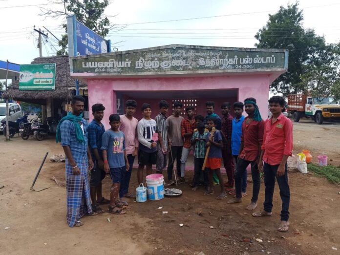 இந்திரா நகர் பேருந்து நிறுத்ததில் அப்பகுதி உறவுகளால் சீரமைக்கப்பட்டு திருக்குறள் எழுத்தப்பட்டு பயன்பாட்டுக்கு கொண்டுவரப்பட்டது