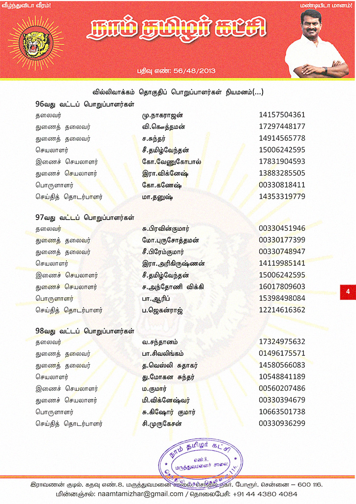 | 96வது வட்டப் பொறுப்பாளர்கள் | |||