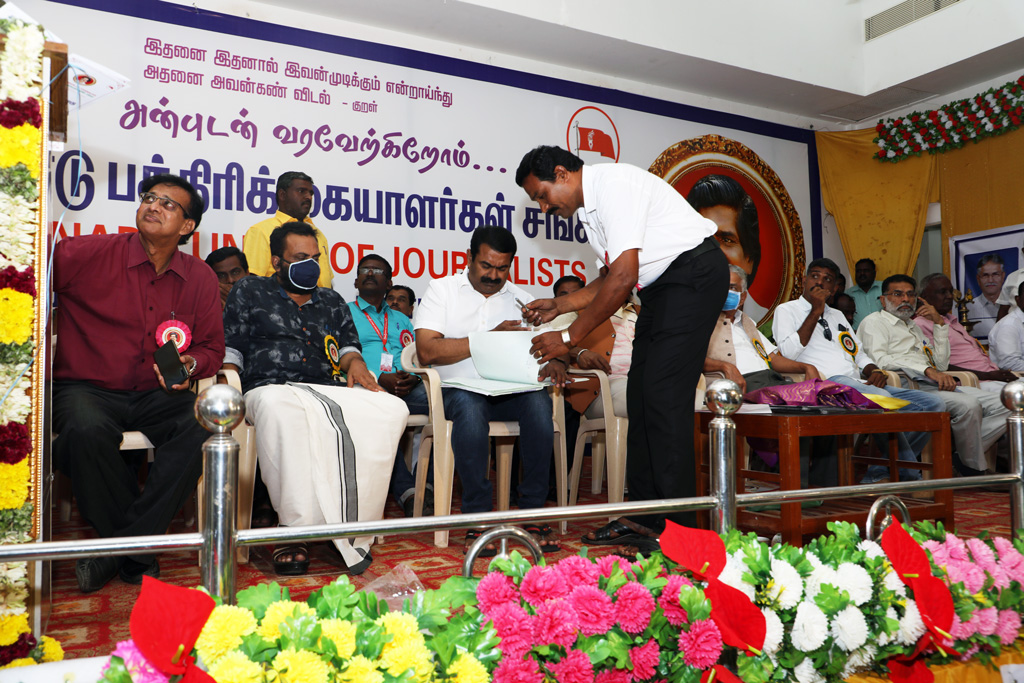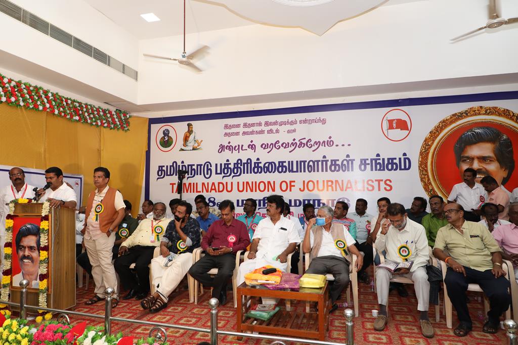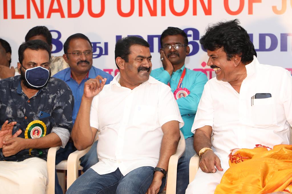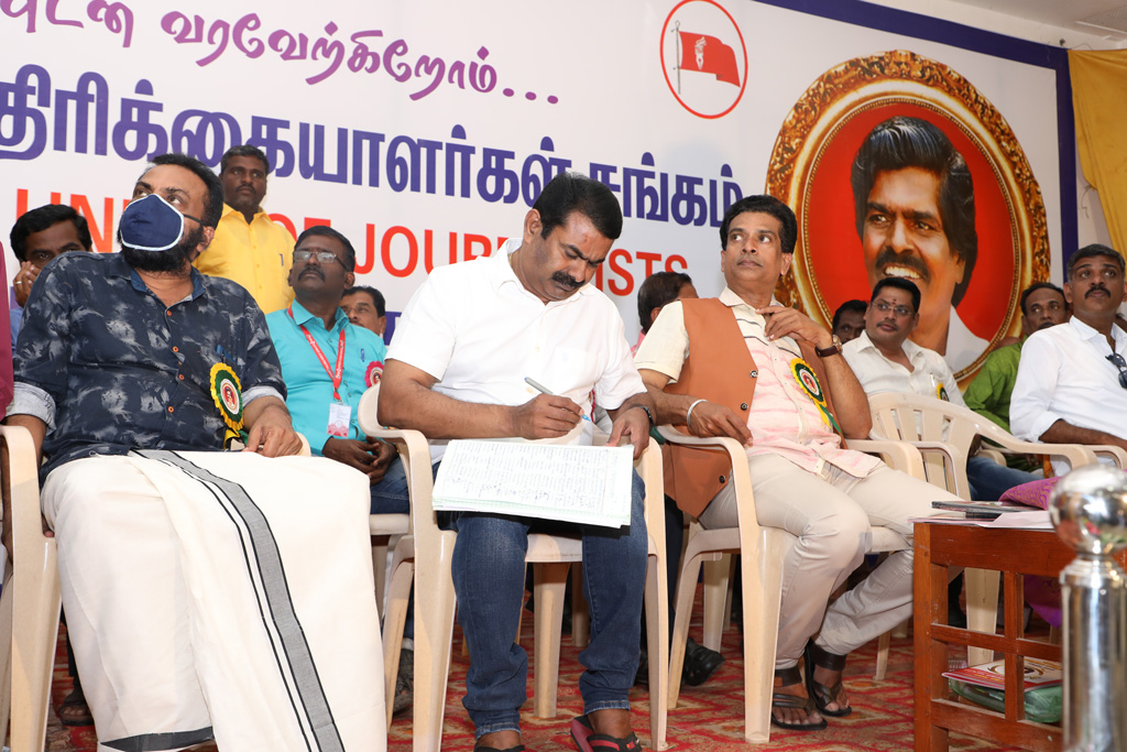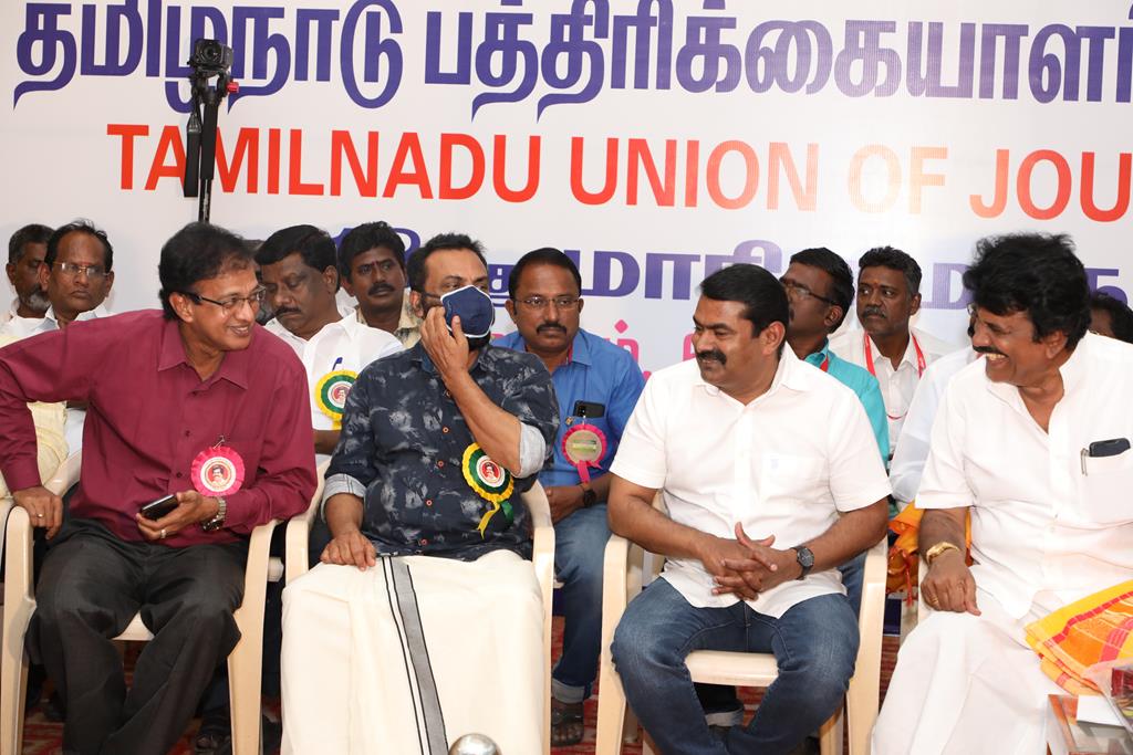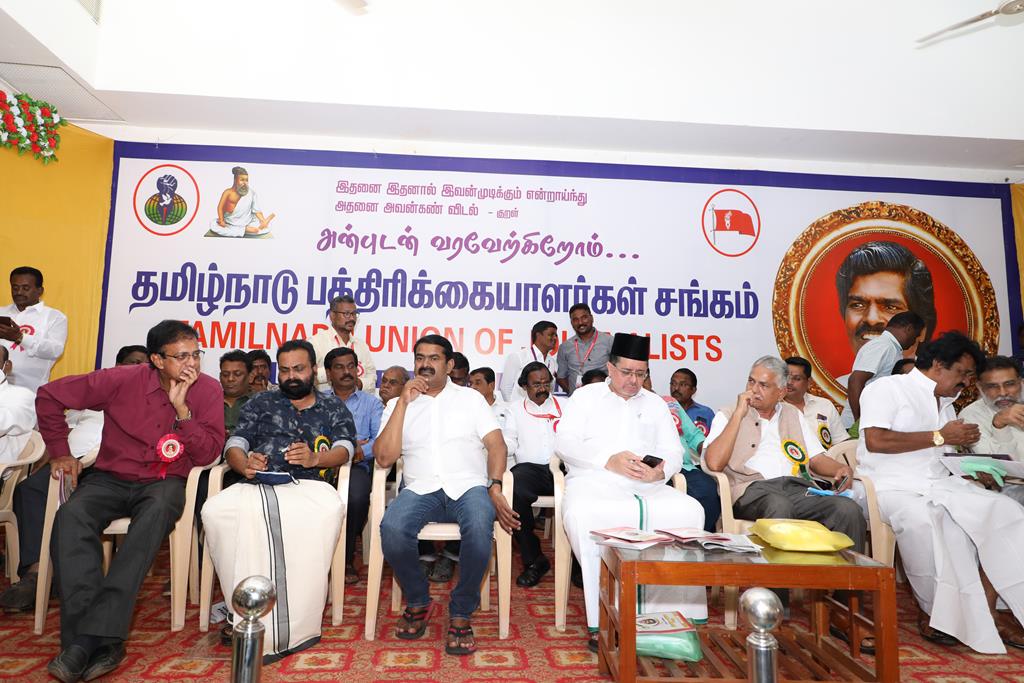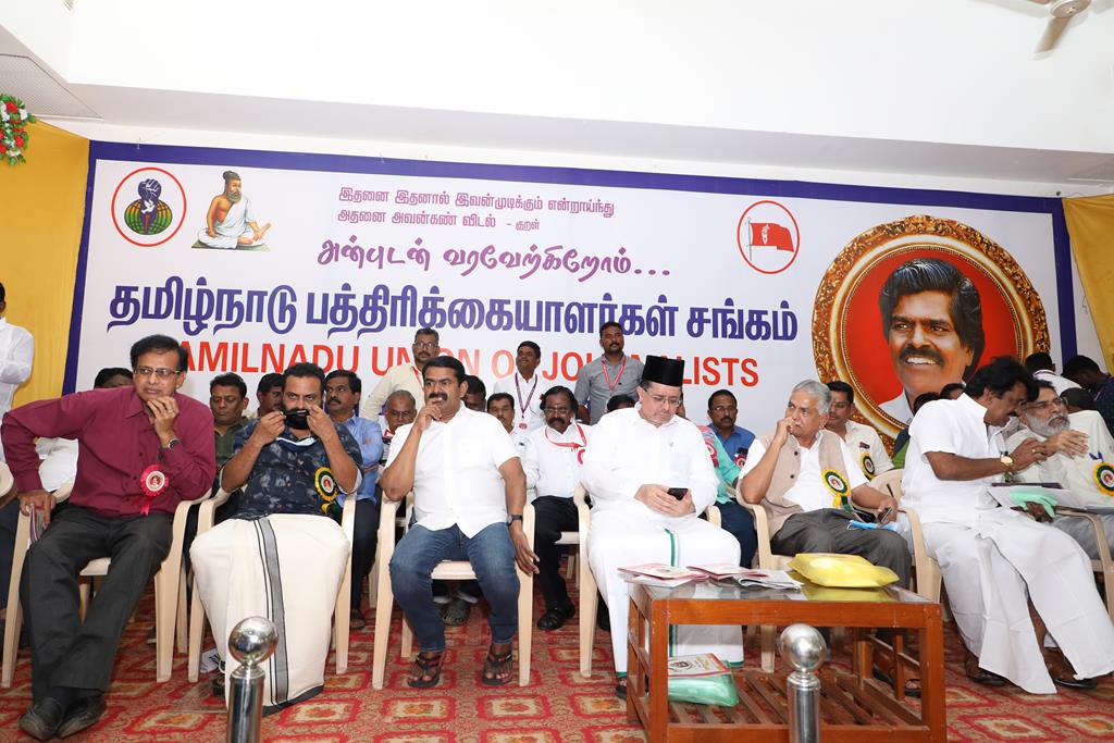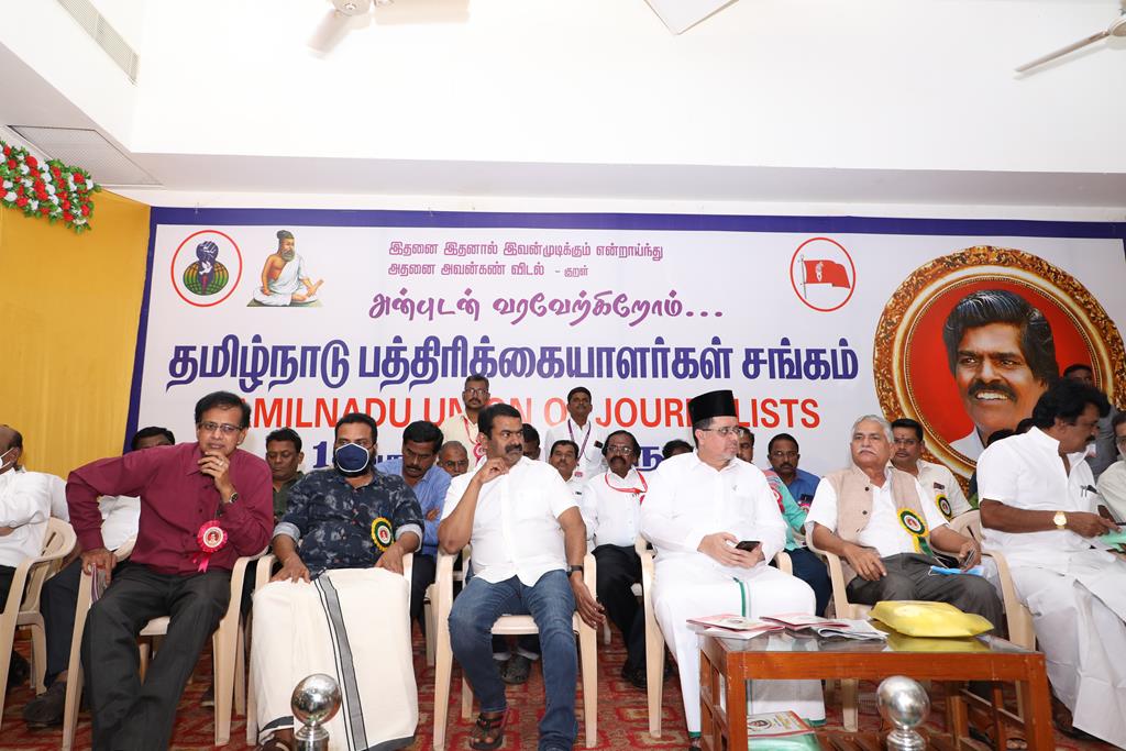 தமிழ்நாடு பத்திரிக்கையாளர்கள் சங்கத்தின் 18வது மாநில மாநாடு 20.02.2021 அன்று தென்காசி மாவட்டம், குற்றாலம் காசிமேஜர்புரத்தில் நடைபெற்றது. இதில் பல்வேறு கட்சிகளின் தலைவர்கள் பங்கேற்று சிறப்புரையாற்றினார்கள். நிறைவாக மாலை 04 மணியளவில் நாம் தமிழர் கட்சியின் தலைமை ஒருங்கிணைப்பாளர் சீமான் அவர்கள் பங்கேற்று, மறைந்த தமிழ்ப் பண்பாட்டு பேராசான் முனைவர் தொ.பரமசிவன் அவர்களின் திருவுருவப்படத்தை திறந்து வைத்து மாநாடு நிறைவுப் பேருரையாற்றினார். தமிழ்நாடு பத்திரிக்கையாளர்கள் சங்கம் சார்பாக சீமான் அவர்களுக்கு நினைவுப் பரிசு வழங்கப்பட்டது.