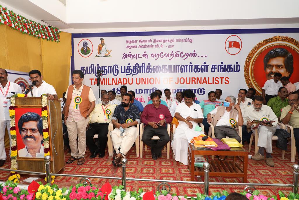 சராசரி இளைஞனாக பொழுதுபோக்குகளில் நாட்டம் கொண்டிருந்த என்னுள் மக்கள் நலன் சார்ந்த சிந்தனையை விதைத்து சராசரி எனது கல்லூரி பேராசிரியரும் தமிழ்ப் பண்பாட்டு ஆய்வறிஞர் முனைவர் தொ.பரமசிவன் அவர்களின் திருவுருவப்படத்தைத் திறந்து வைத்ததில் பெருமையடைகிறேன். இதழியல் துறையின் பல்வேறு ஆளுமைகள் பங்கேற்றுள்ள இவ்வரலாற்றுப் பெருநிகழ்வில் பங்கேற்றது மட்டற்ற மகிழ்ச்சியைத் தருகிறது. நீங்கள் (பத்திரிக்கையாளர்கள்) எங்களுக்குத் துணையாக இருங்கள்! நாங்கள் உங்களுக்கு உயிராக இருப்போம்! மக்களின் நலனுக்காக இனி வருங்காலங்களிலும் நாம் ஒன்றிணைந்து செயல்படுவோம்.