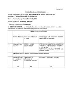வருகின்ற ஏப்ரல் 6 அன்று நடைபெறவிருக்கின்ற தமிழகசட்டமன்றப் பொதுத்தேர்தலில்  நாம் தமிழர் கட்சி சார்பாக கரும்பு விவசாயி சின்னத்தில் போட்டியிடுகின்ற பாபநாசம்  சட்டமன்றத்தொகுதி வேட்பாளரின்  குற்றப்பின்னணி  குறித்த விவரங்கள் கீழே உள்ள கோப்பில் இணைக்கப்பட்டுள்ளது.