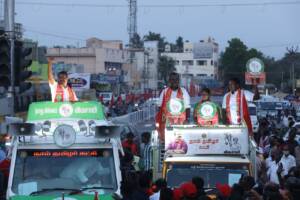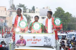 தொகுதி வேட்பாளர் சரவணன், பெருந்துறை தொகுதி வேட்பாளர் லோகநாதன் பவானி தொகுதி வேட்பாளர் சங்கீதா ஆகியோர்களை ஆதரித்து தலைமை ஒருங்கிணைப்பாளர் சீமான் அவர்கள் 25-03-2021 அன்று திருச்செங்கோடு வடக்கு வீதியில் பரப்புரை மேற்கொண்டார்.