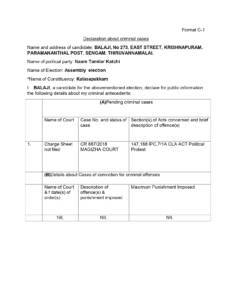 வருகின்ற ஏப்ரல் 6 அன்று நடைபெறவிருக்கின்ற தமிழகசட்டமன்றப் பொதுத்தேர்தலில் நாம் தமிழர் கட்சி சார்பாக கரும்பு விவசாயி சின்னத்தில் போட்டியிடுகின்ற கலசபாக்கம் சட்டமன்றத்தொகுதி வேட்பாளரின் குற்றப்பின்னணி குறித்த விவரங்கள் கீழே உள்ள கோப்பில் இணைக்கப்பட்டுள்ளது.