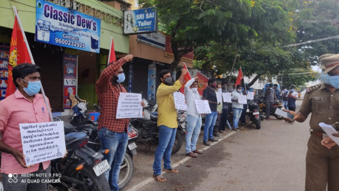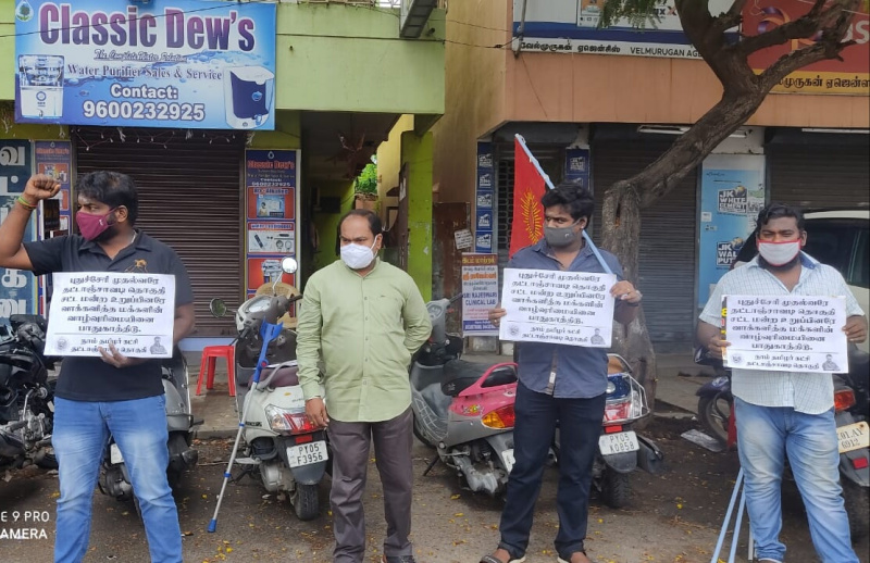 நாம் தமிழர் கட்சி தட்டாஞ்சாவடி தொகுதியில் புதுச்சேரி மாநிலம் ஊரடங்கில் பாதிக்கப்பட்ட பொதுமக்களுக்கு கொரோனா நிவாரணநிதியினை வழங்ககோரி மாவட்டாட்சியர் அலுவலகத்தின் முன்பு கோரிக்கையை முன்வைத்து கண்டன முழக்க போராட்டம் நடைபெற்றது.