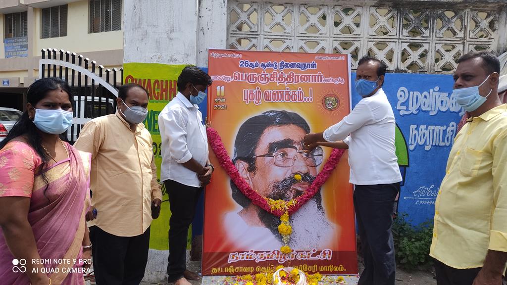 புதுச்சேரி நாம் தமிழர் கட்சியின் தட்டாஞ்சாவடி தொகுதி சார்பாக தமிழறிஞர் பாவலரேறு. பெருஞ்சித்திரனார் அவர்களின்26 ஆம் ஆண்டு நினைவு நாளில் ஐயாவின் திரு உருவப் படத்திற்கு மலர்தூவி புகழ் வணக்கம்  செலுத்தினார்கள்